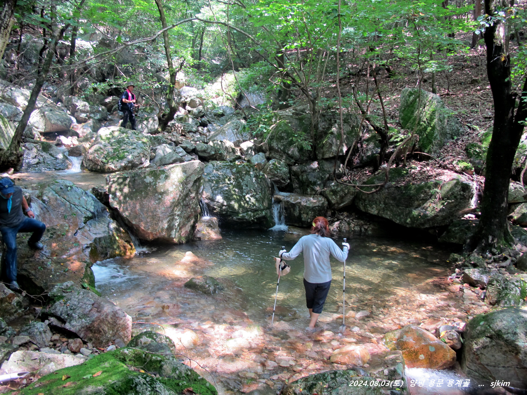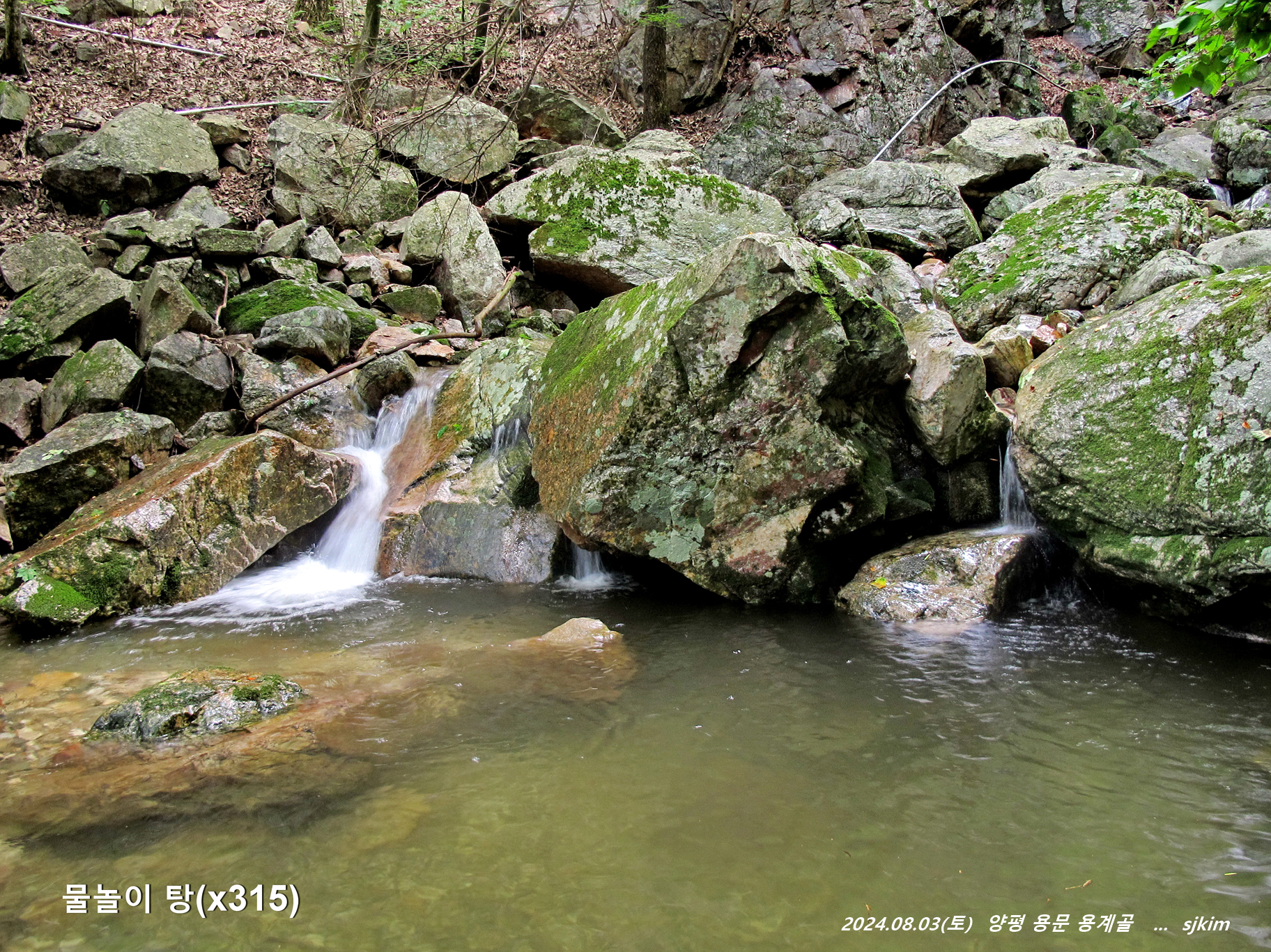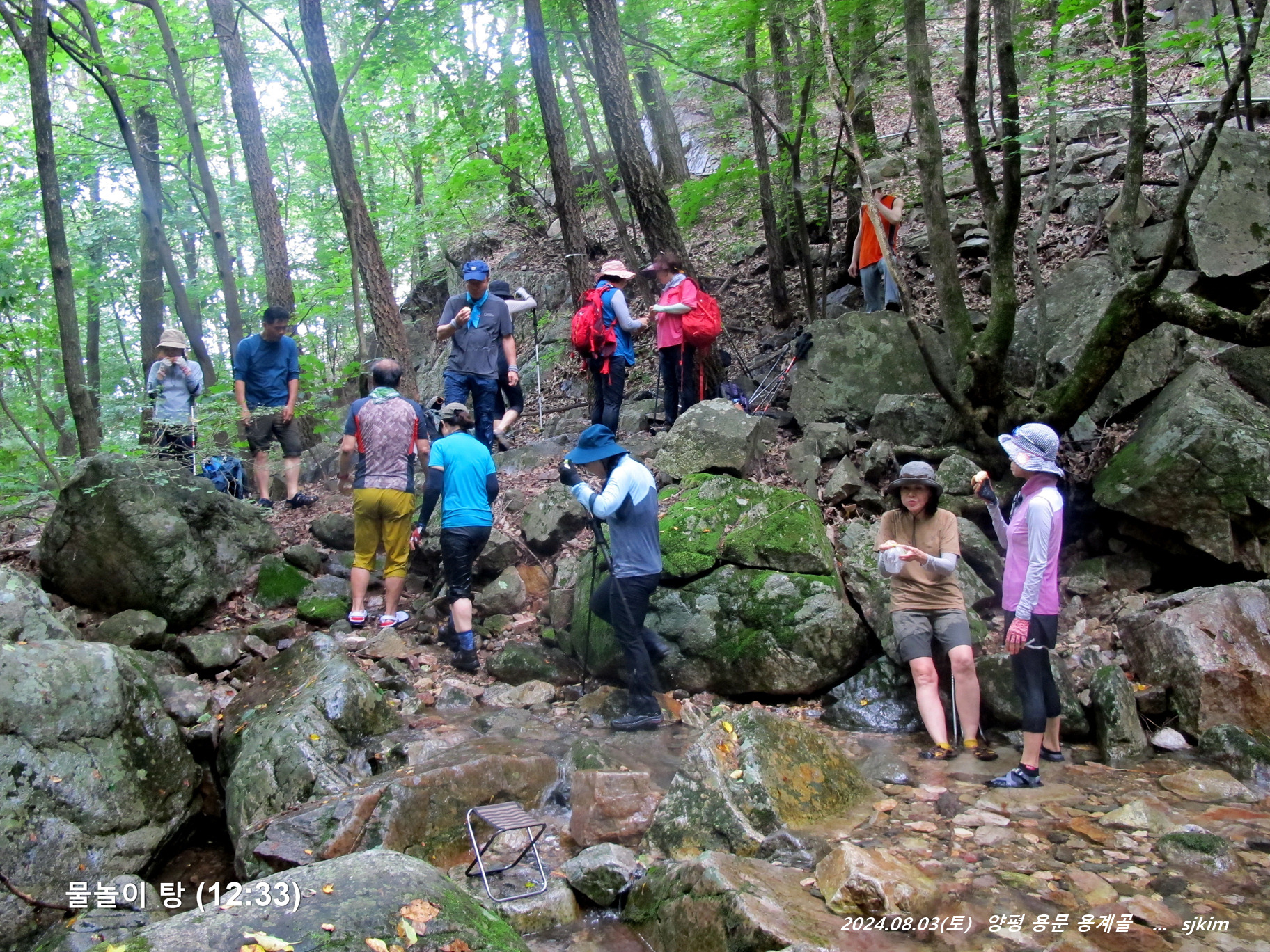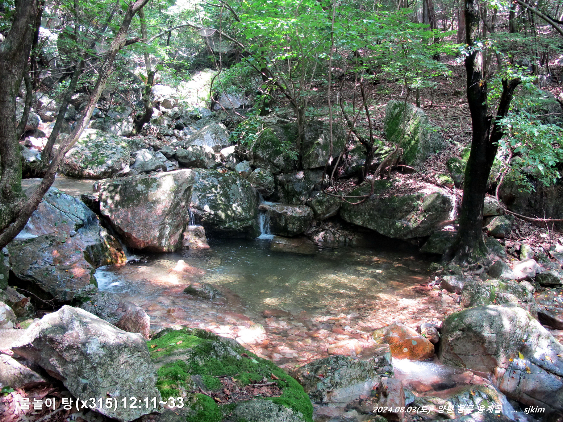용계골 탐방 반환점 물놀이 탕(x315)에서 즐겁게 지내고 발길을 되돌아 내려
