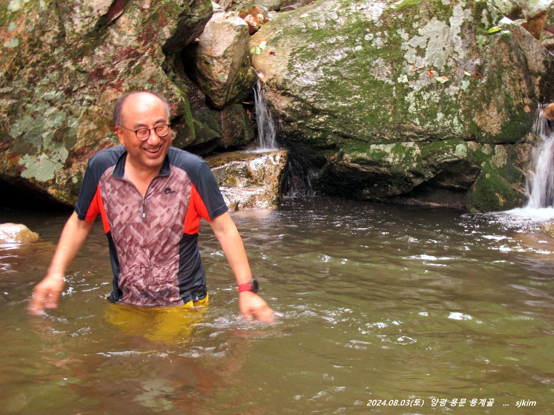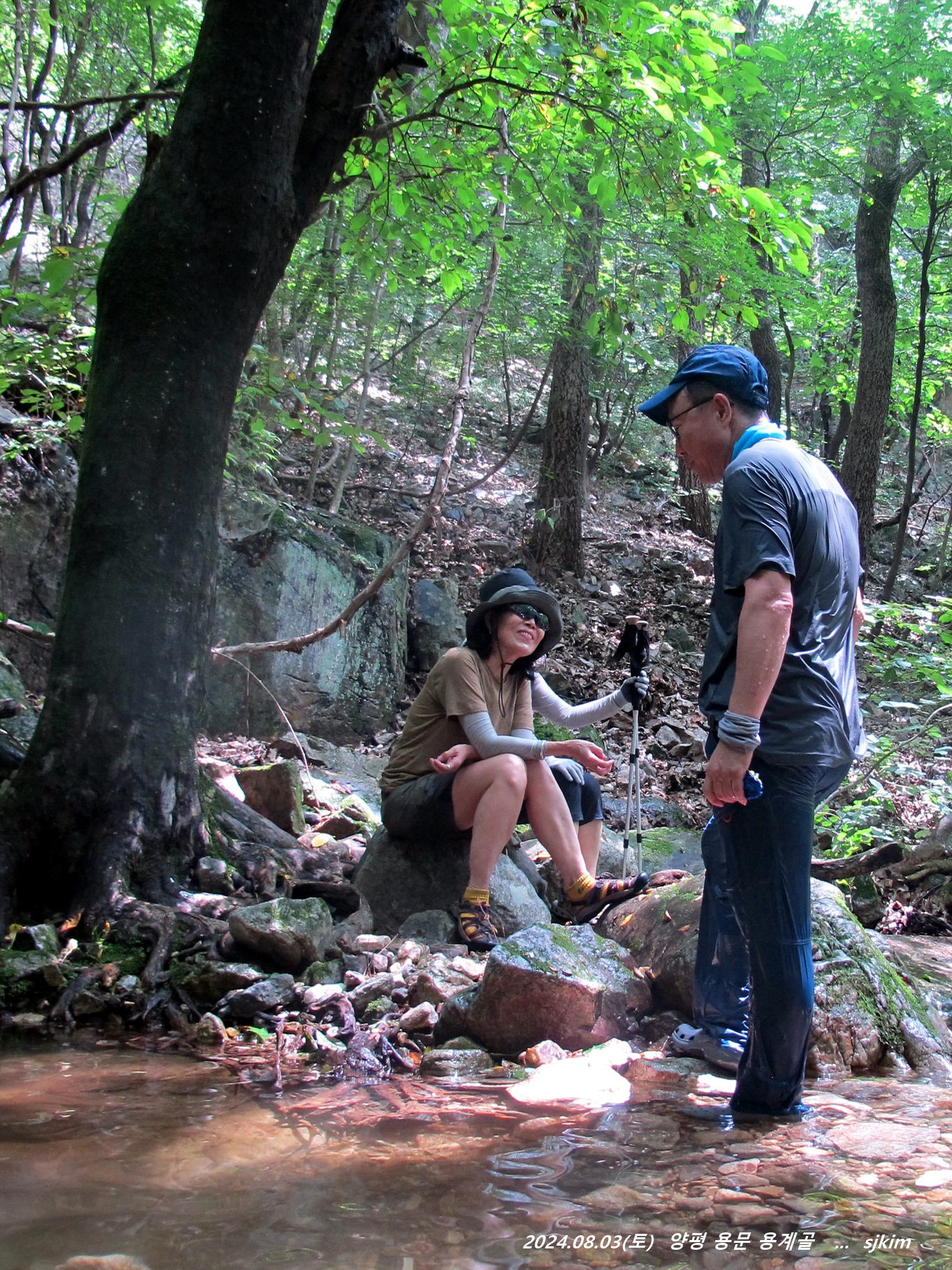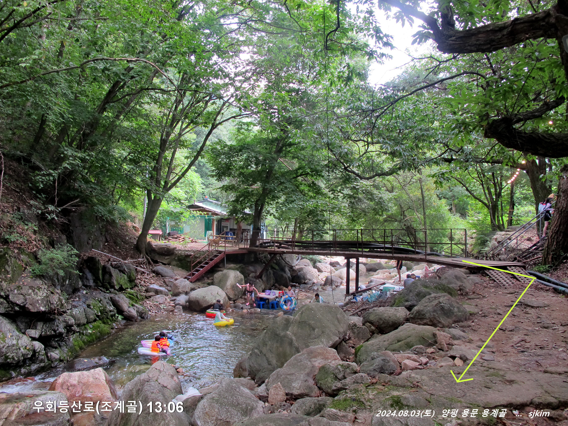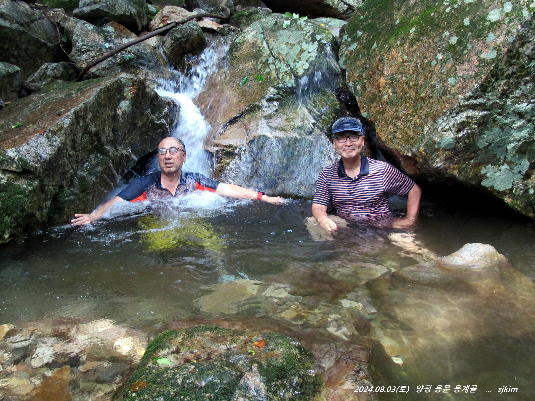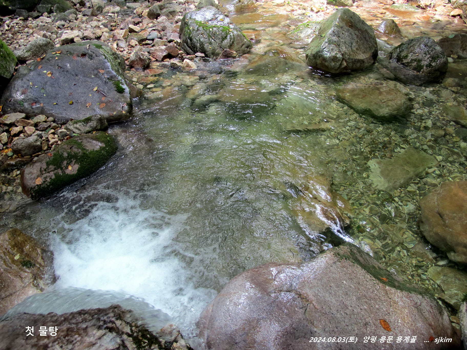 용계골 탐방 반환점 물놀이 탕(x315)에서 즐겁게 지내고 발길을 되돌아 내려