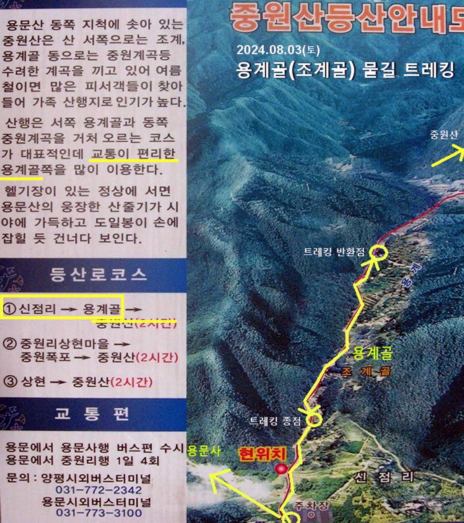 중원산 용계골 물길 트레킹 안내도