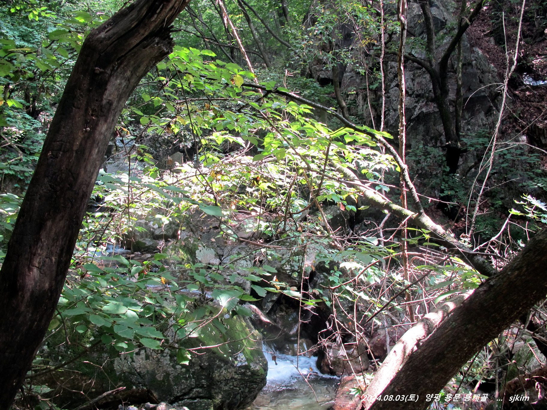 첫 물탕 이후 되돌아 내린 조계골 날머리까지 내내 서늘한 기운이 충만하여 더운 줄 모른 용계골입니다.
