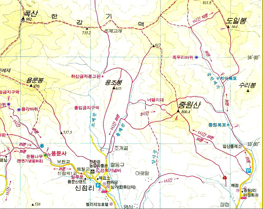 용문산 용문봉, 용조봉, 중원산 산행지도