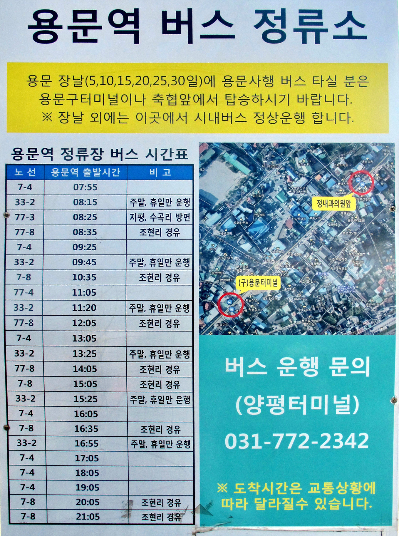 10시 14분 용문역에 내려 역 앞 버스정류장에서 10시 35분 발 시내버스를 환승