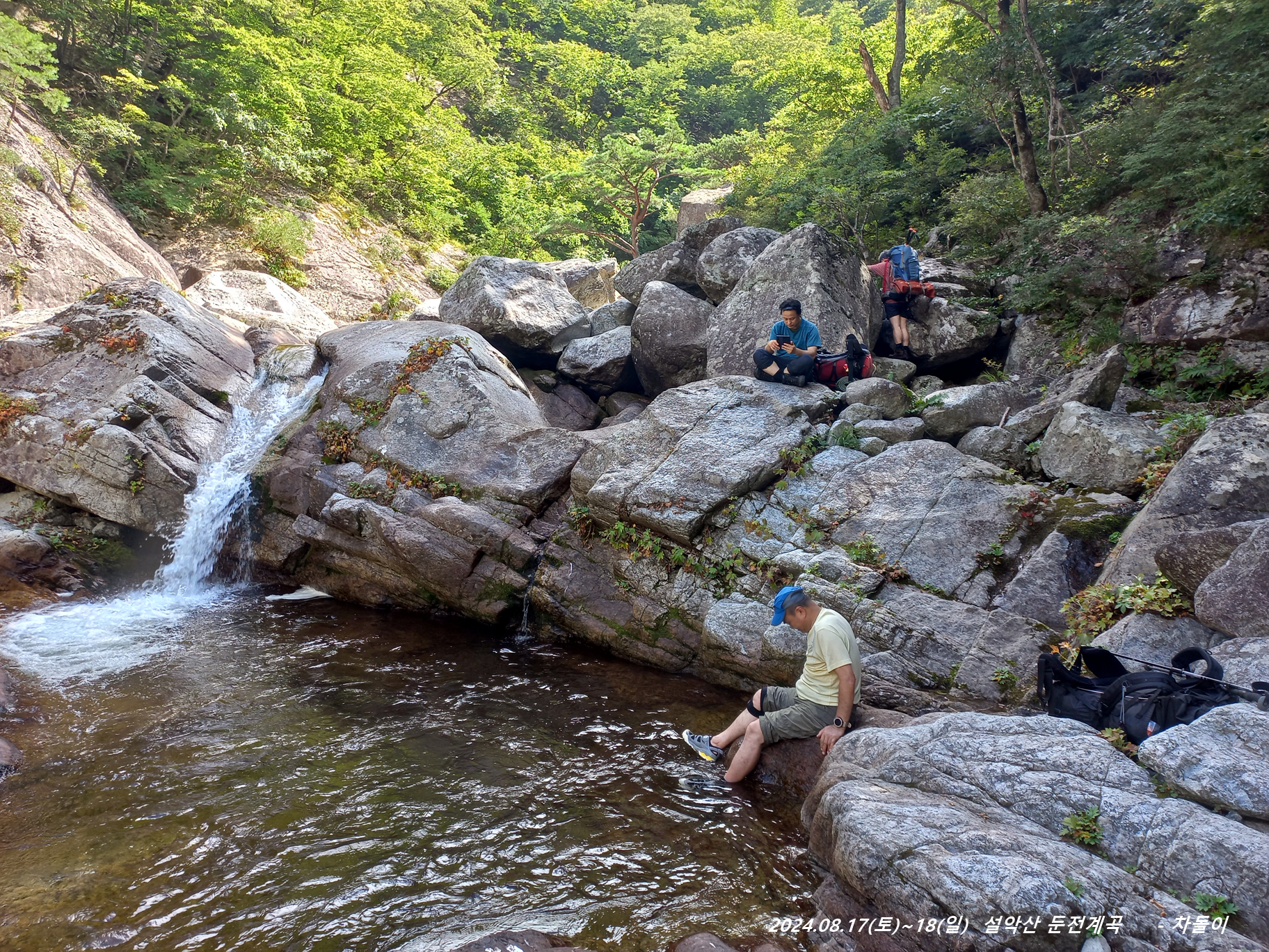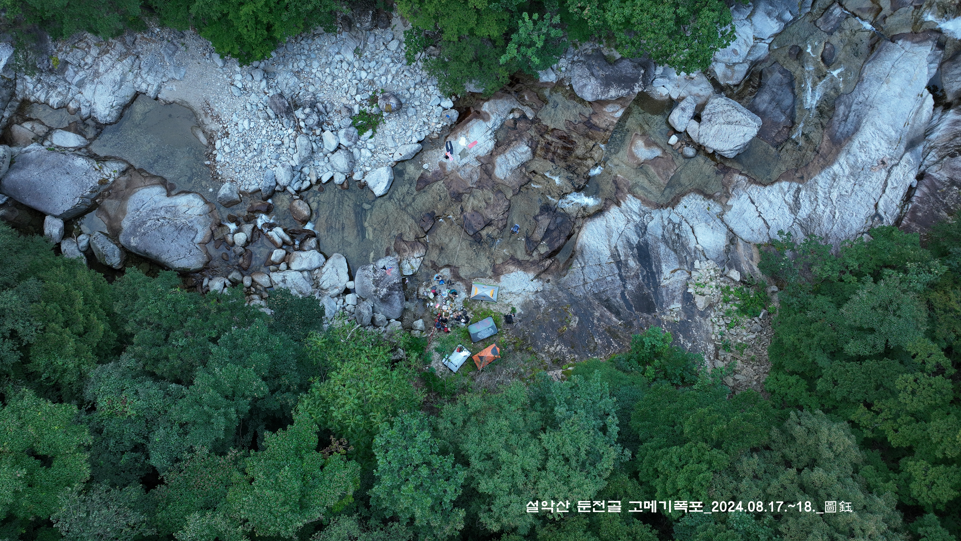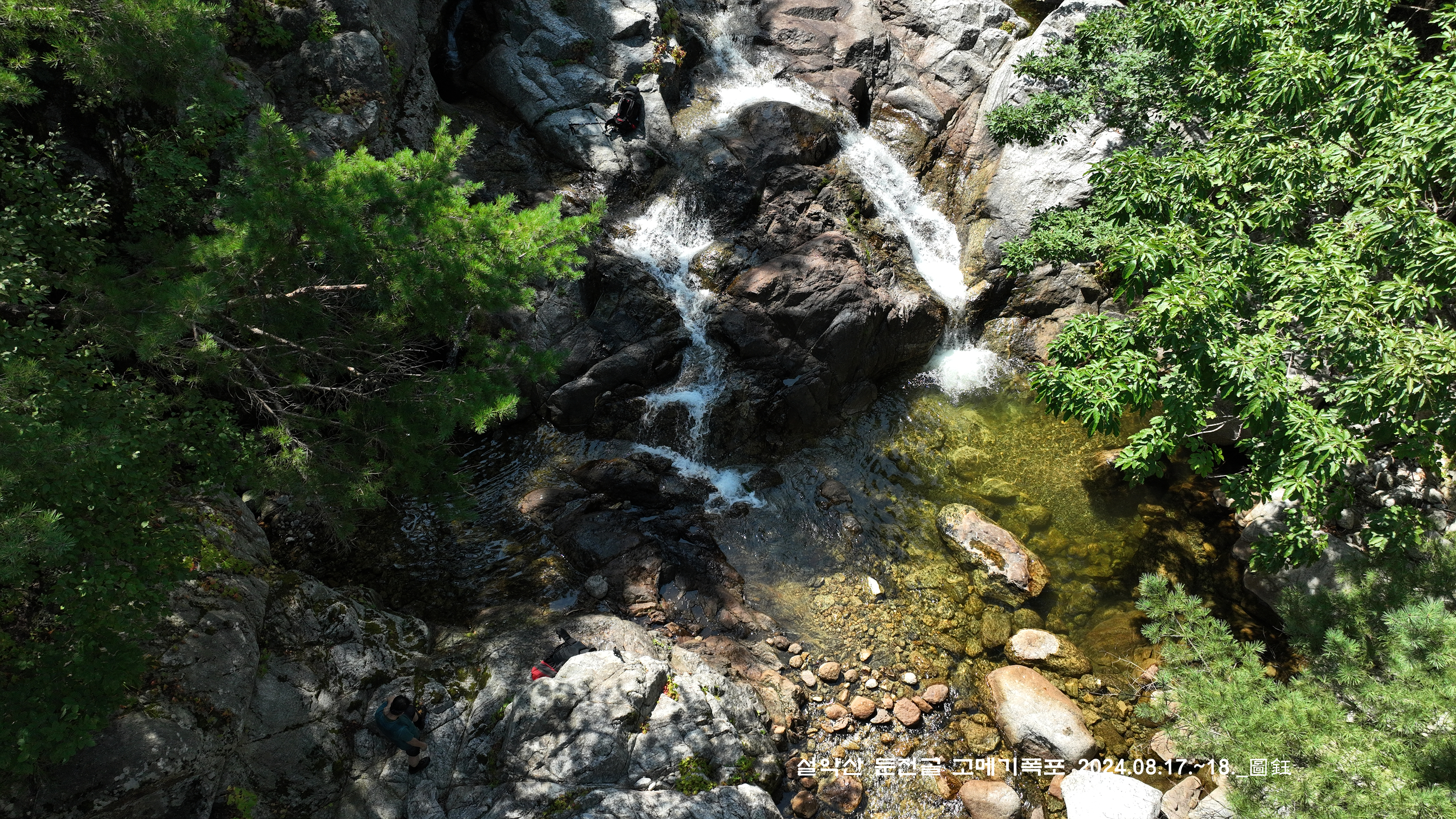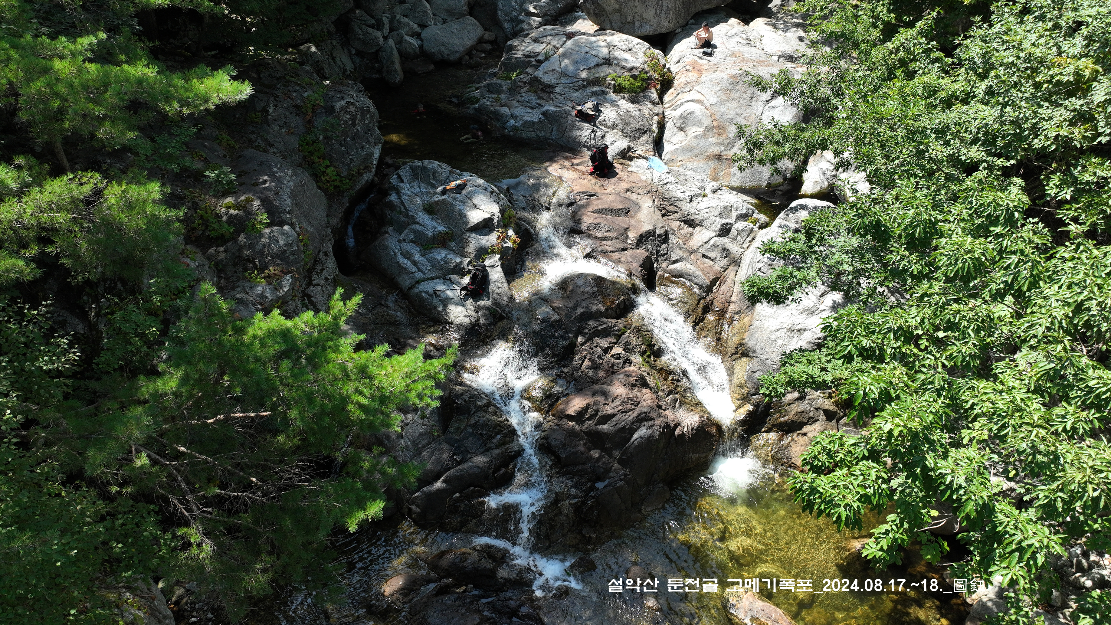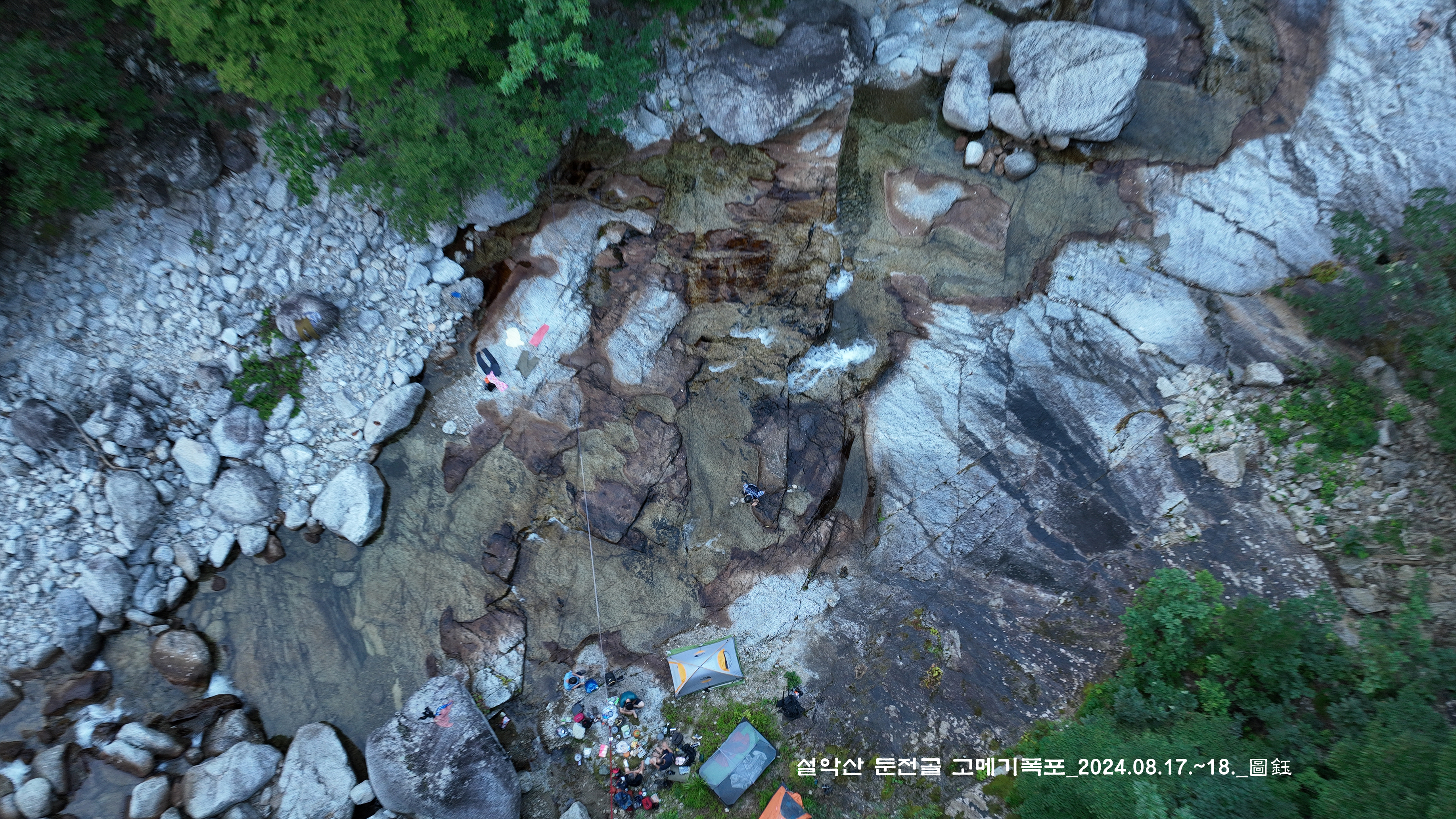 위쪽에 한 팀이 자리를 잡고 있는데, 바로 둔전 제1폭 아래 지점입니다. 14:15