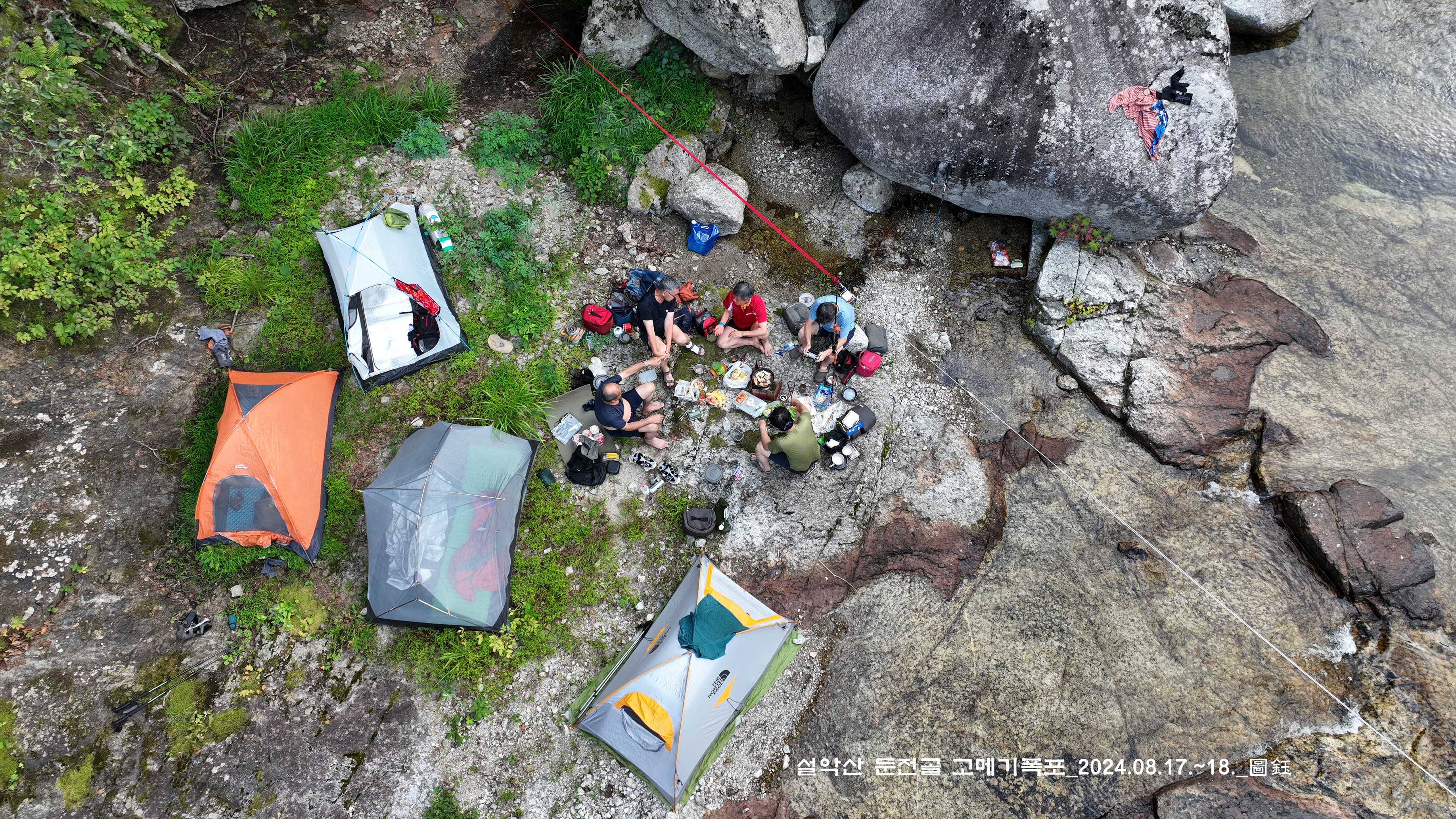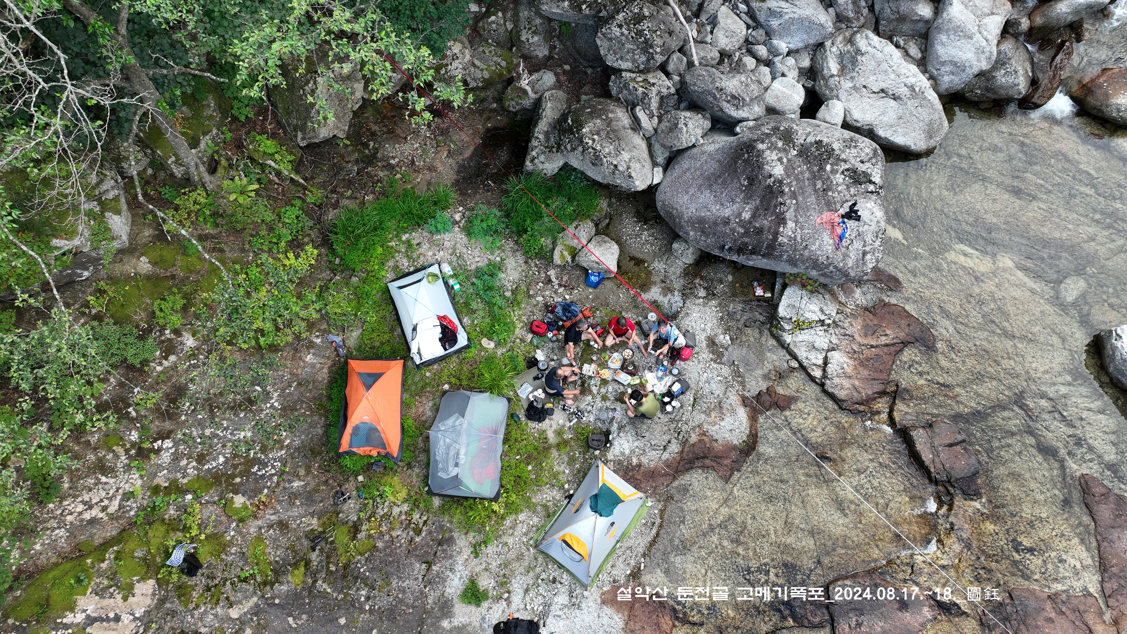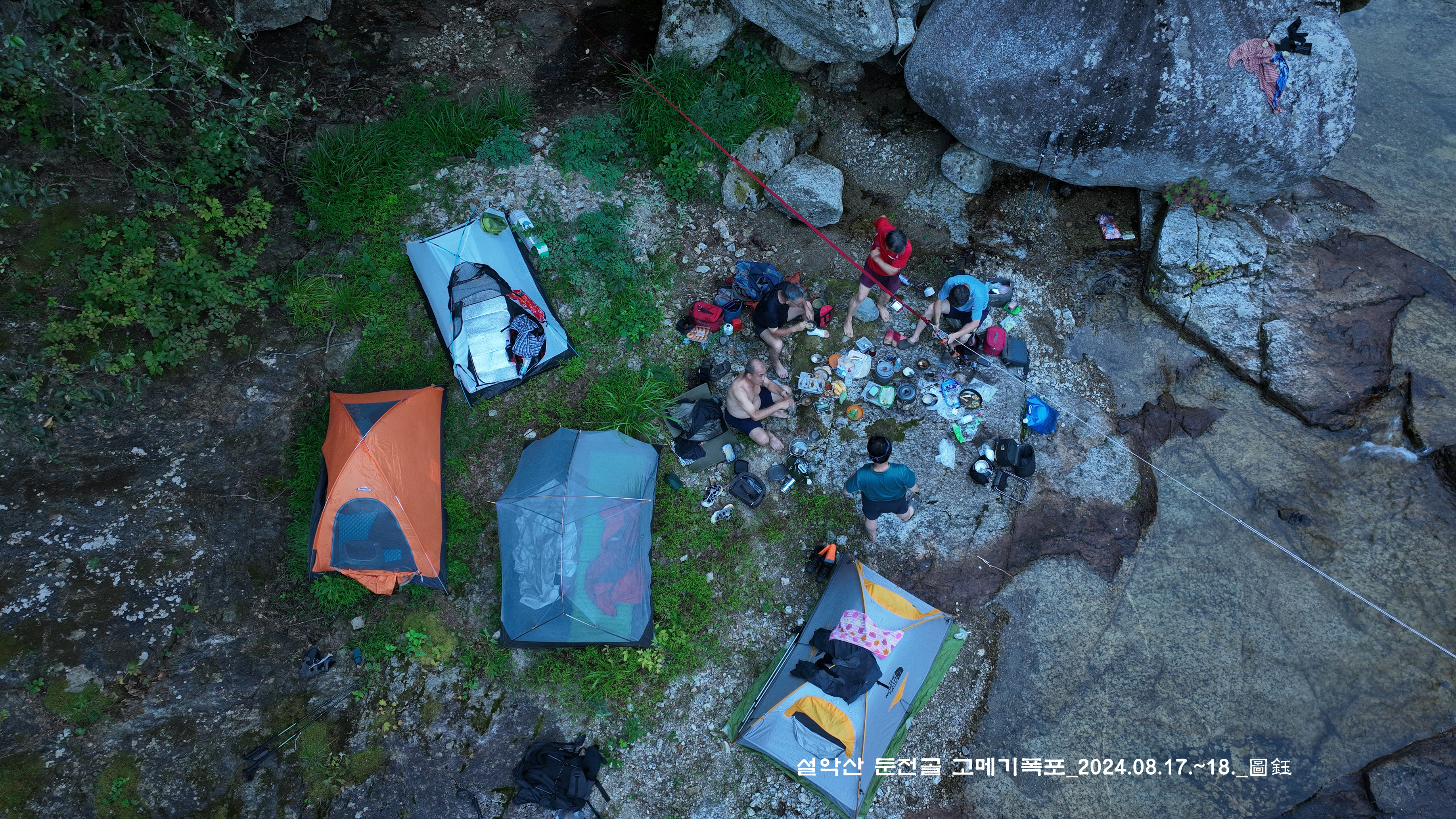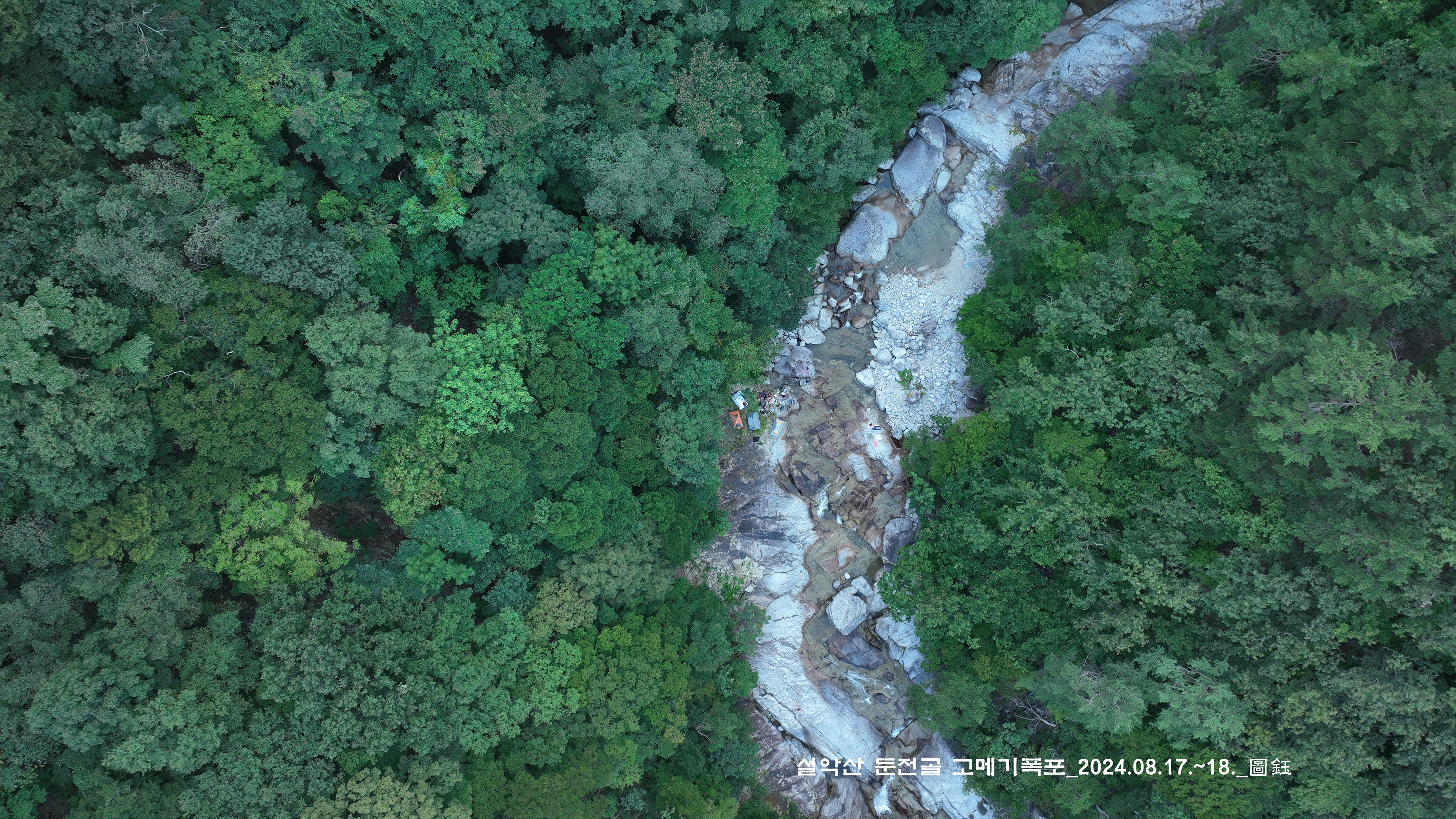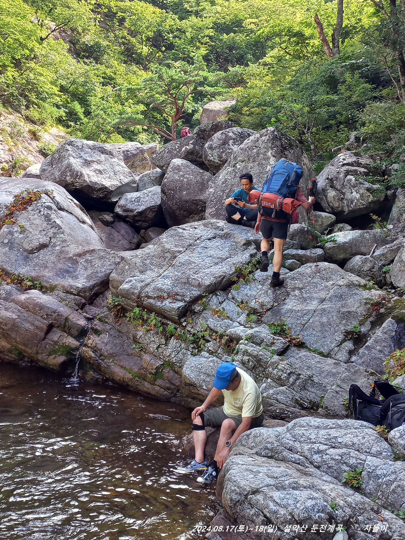 위쪽에 한 팀이 자리를 잡고 있는데, 바로 둔전 제1폭 아래 지점입니다. 14:15