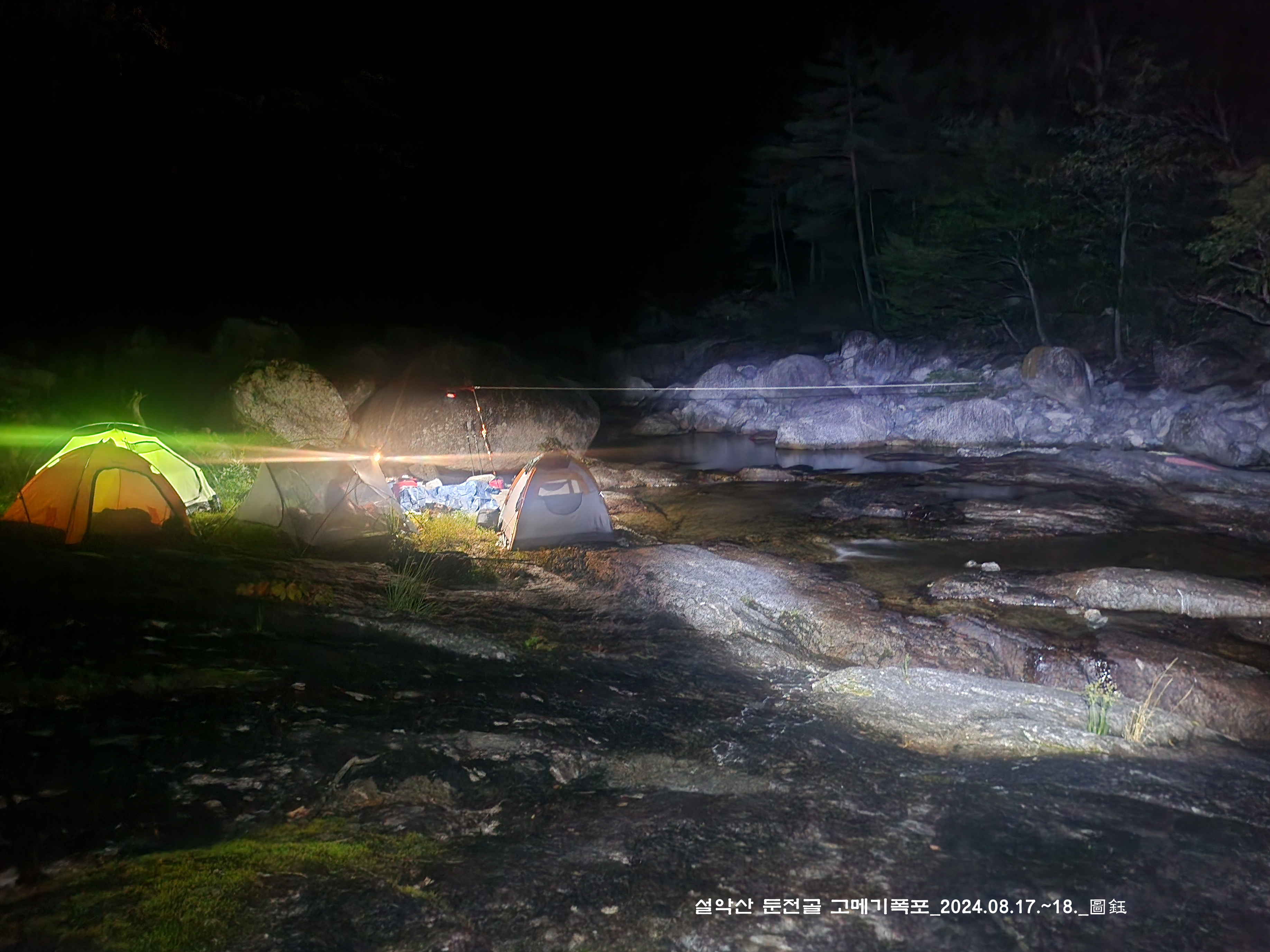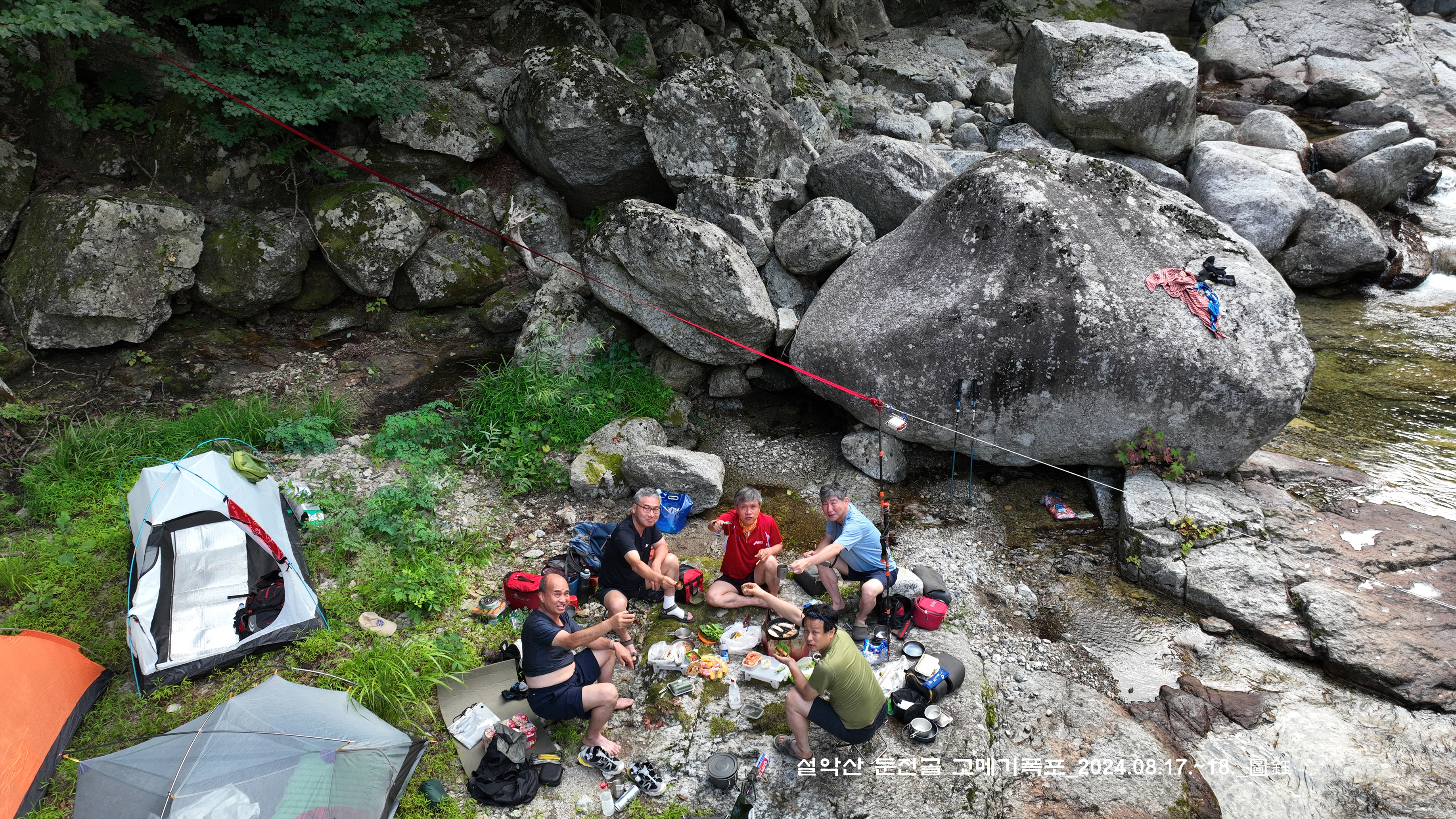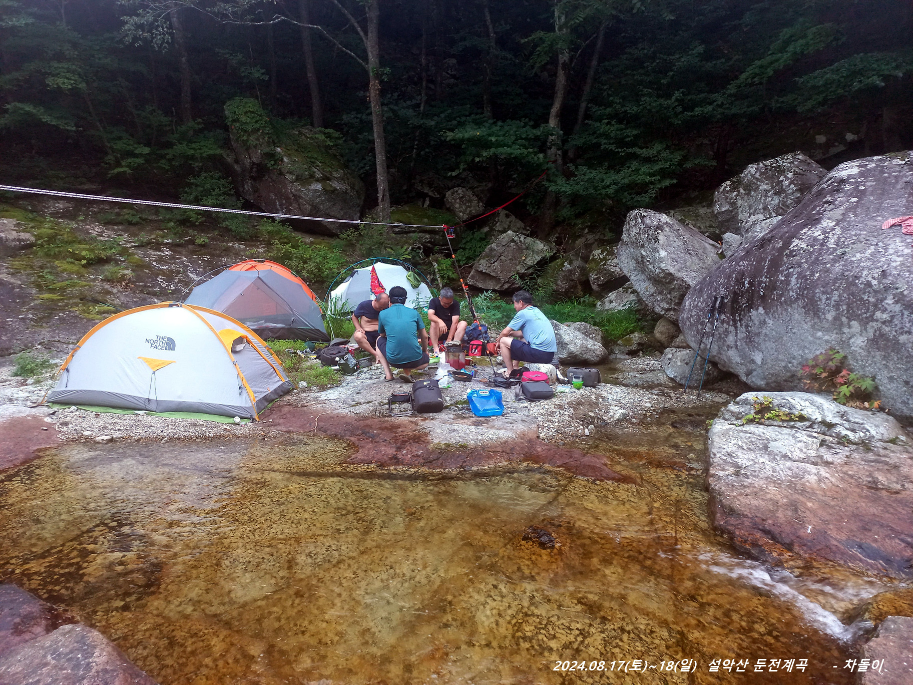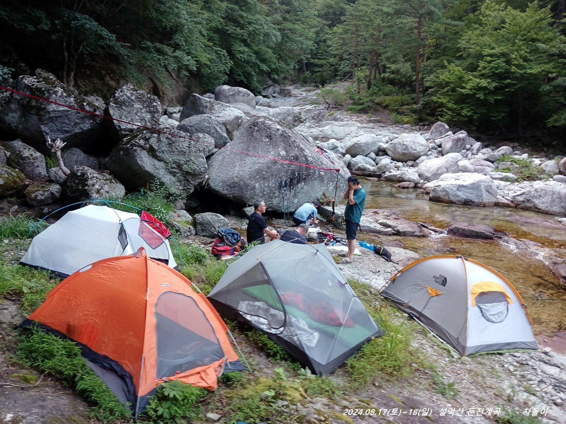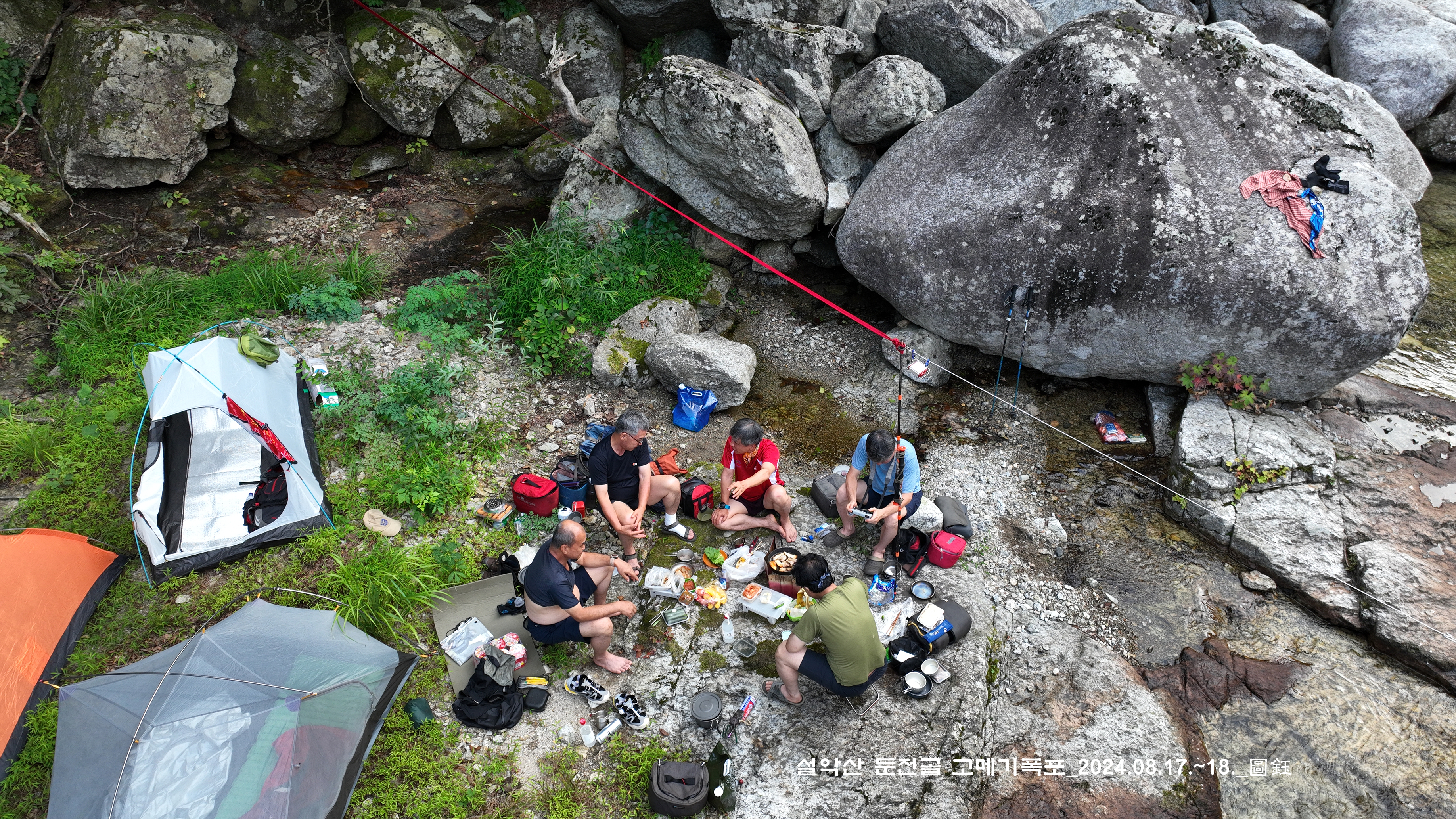 위쪽에 한 팀이 자리를 잡고 있는데, 바로 둔전 제1폭 아래 지점입니다. 14:15