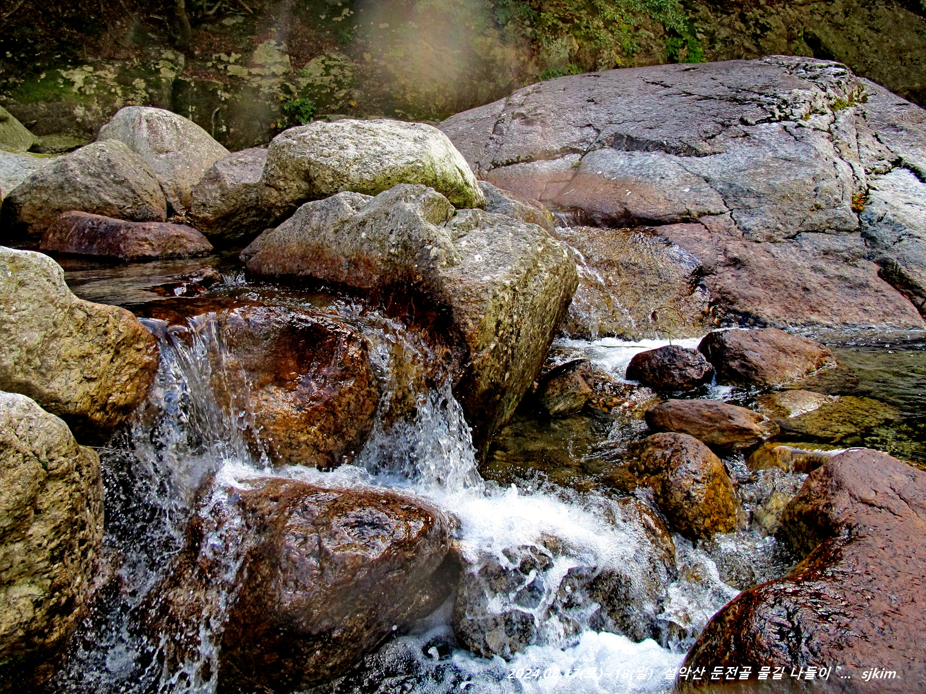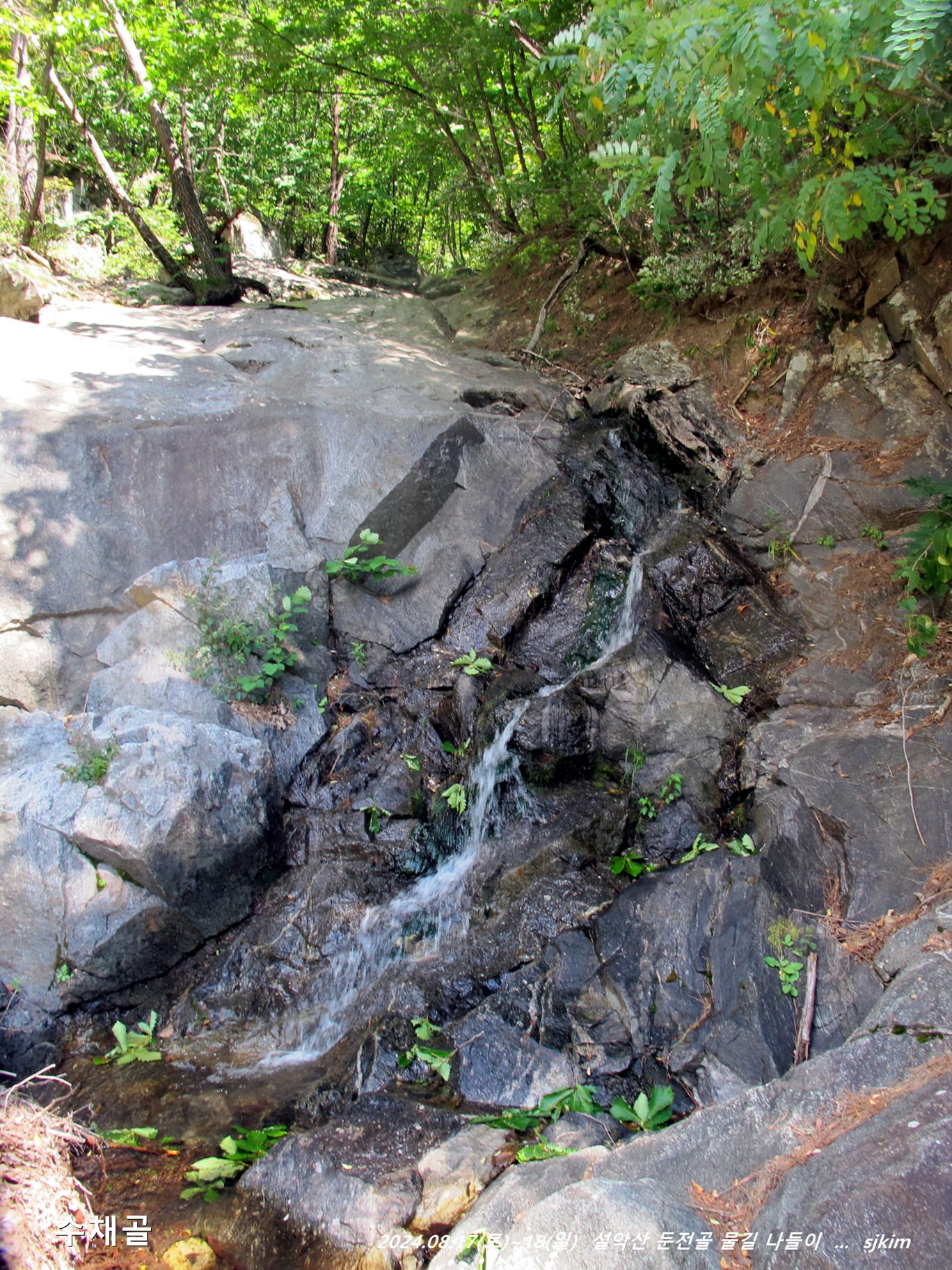 둔전골 석벽(석문, 해발 405m) 앞 물나드리, 08:39