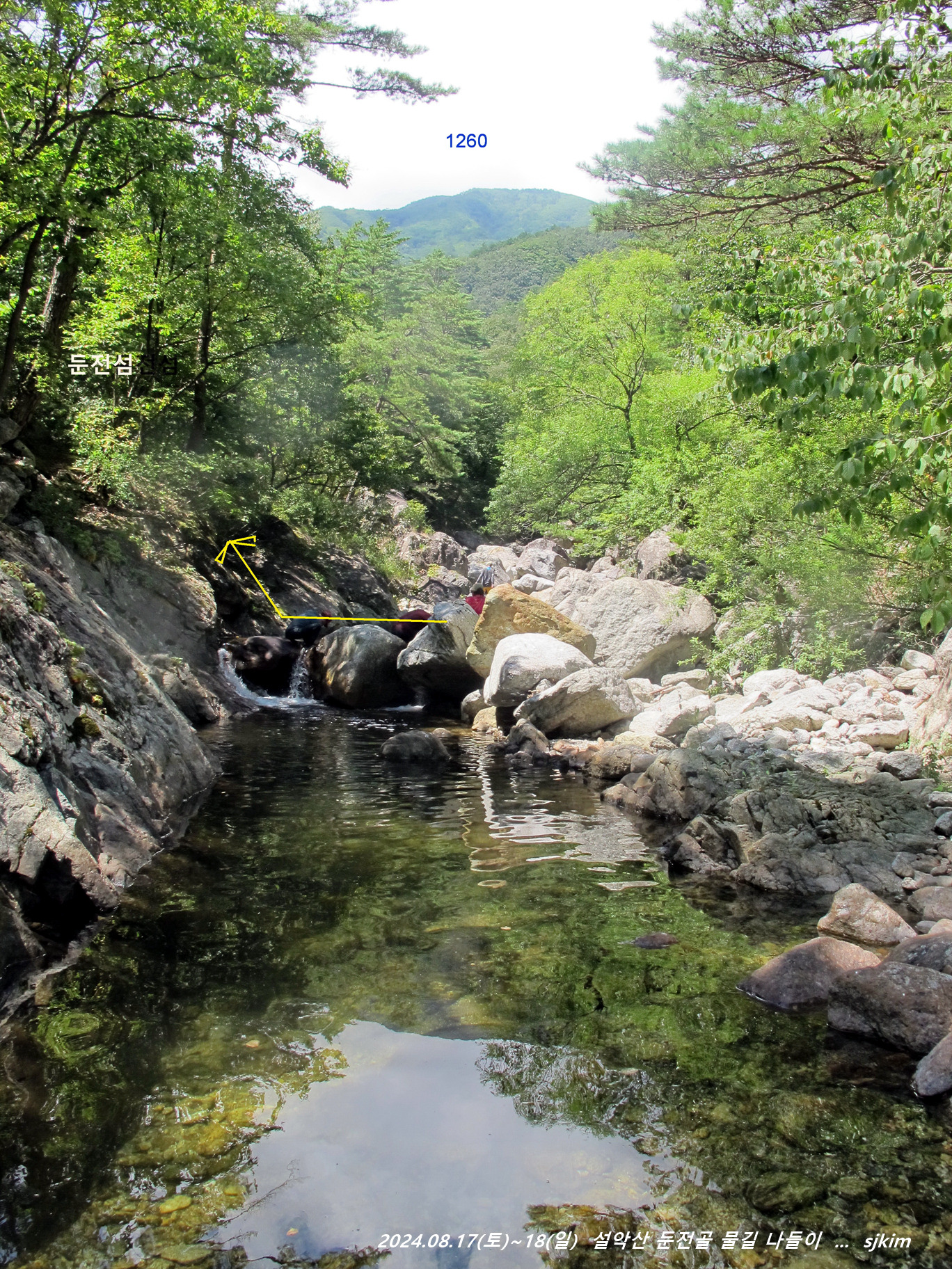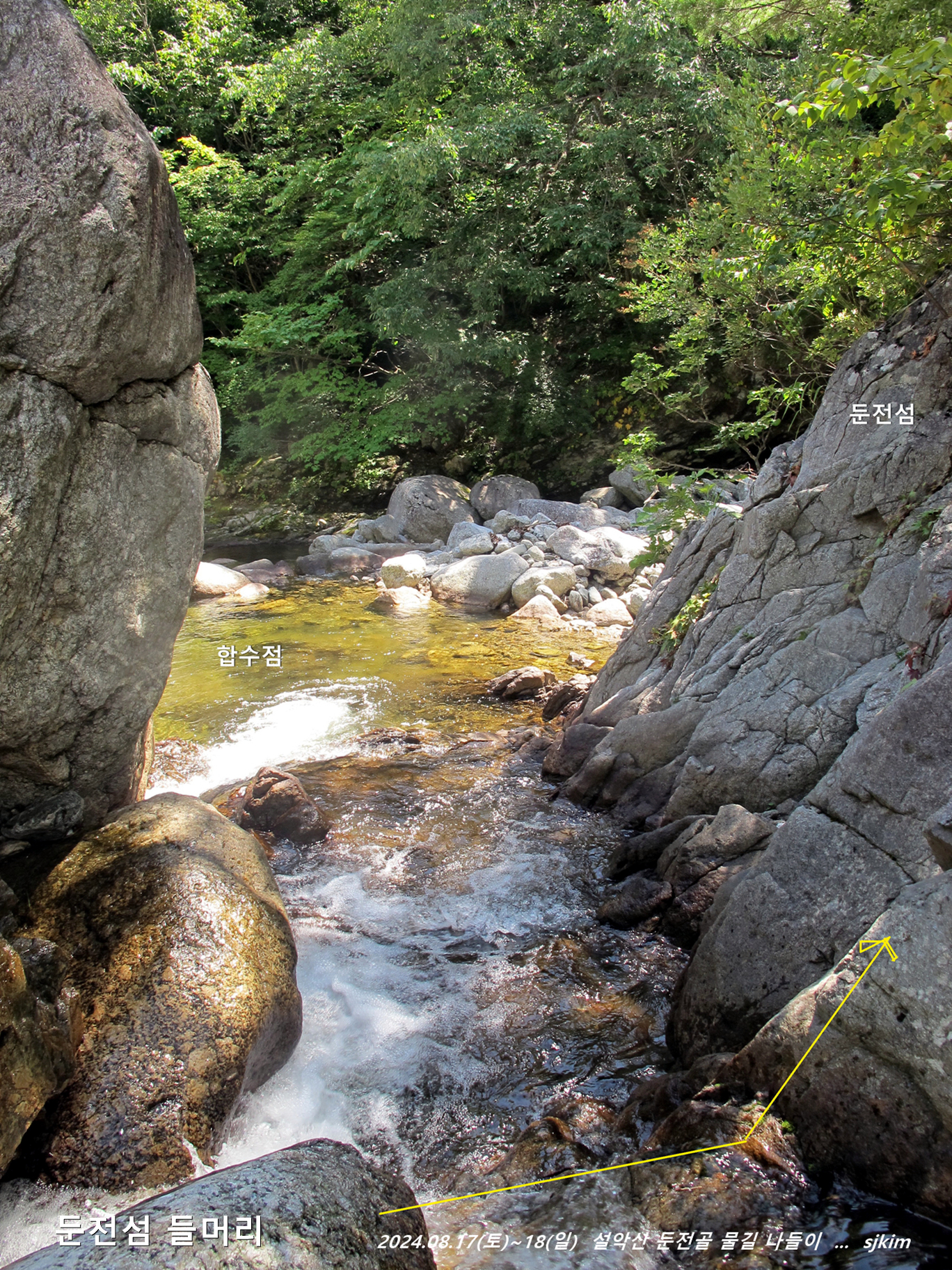 둔전섬 양안의 물이 합수되는 곳(해발 295m), 13:02