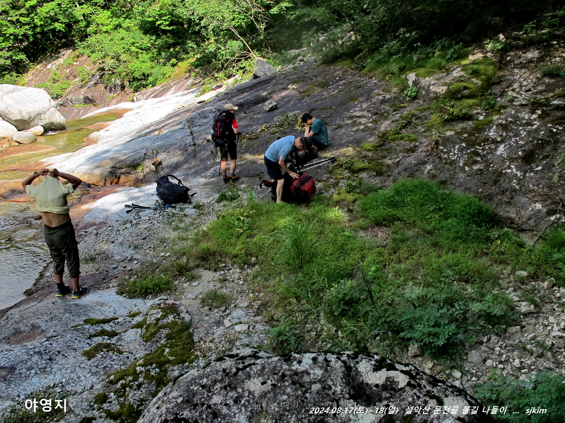 예년처럼 이곳에 배낭을 내리고 물놀이를 즐기기로 합니다. 13:47~ 14:08