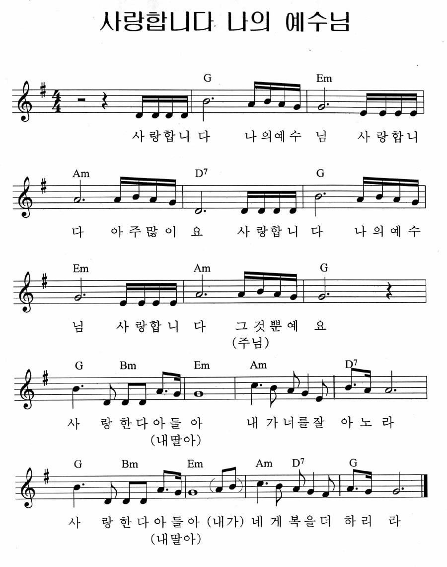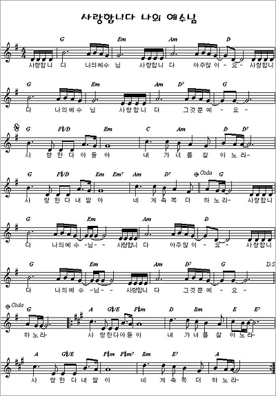 사랑합니다나의예수님 악보 [유미선 2집, G코드]