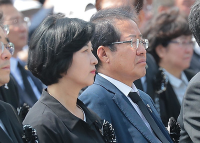 ◇ 더불어민주당이 자유한국당 전신인 한나라당이 2006년 선거 때부터 ‘매크로(자동입력반복) 프로그램’을 활용해 여론조작에 나선 의혹을 수사해달라는 고발장을 이르면 7일 서울중앙지검에 제출하기로 했다. 자유한국당은 조속한 특별검사(특검) 수사를 요구했던 ‘드루킹 댓글 추천수 조작 의혹’ 사건 때와 달리 침묵 상태로 상황을 주시하고 있다. 6일 오전 대전국립현충원에서 열린 63주기 현충일 추념식에 참석한 추미애 더불어민주당 대표(왼쪽)와 홍준표 자유한국당 대표가 나란히 앉아 있다. 대전/청와대사진기자단