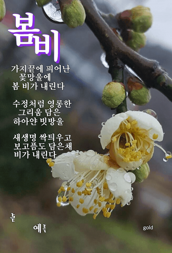 봄비가 내립니다 작성자맑은맘|작성시간26.04.04|조회수813 목록 댓글 29 글자크기 작게가 글자크기 크게가 이은하 - 봄비 수집자료 /편집 다음검색 현재 게시글 추가 기능 열기 북마크 공유하기 신고 센터로 신고 댓글 댓글 29 댓글쓰기 답글쓰기 댓글 리스트 답댓글 작성자맑은맘 작성자 본인 여부 작성자 | 작성시간 26.04.06 목자님!안녕하세요다녀가신 고운 걸음 감사합니다한주간도 건강하시고행복하세요.^^ 이미지 확대 작성자바람♥ | 작성시간 26.04.04 감사합니다 답댓글 작성자맑은맘 작성자 본인 여부 작성자 | 작성시간 26.04.06 바람님!안녕하세요흔적 주셔서 감사합니다한주간도 건강하시고행복하세요.^^ 이미지 확대 작성자은나라공주 | 작성시간 26.04.05 아름다운 이미지, 감사합니다.오늘도 행복한 하루 되세요~ 💅🏻💅🏻💅🏻 답댓글 작성자맑은맘 작성자 본인 여부 작성자 | 작성시간 26.04.06 은나라공주님!안녕하세요다녀가신 고운 걸음에감사드립니다한주도 건강하시고행복 하세요.^^ 이미지 확대 댓글 전체보기