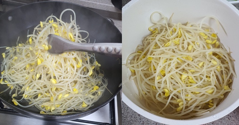 2) 그리고 데친 콩나물을 그대로 볼에 건져 식혀주세요.