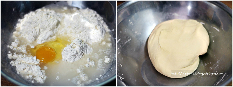 수제비 반죽(4인분) : 밀가루4컵, 물2컵, 계란1개, 소금0.5t
