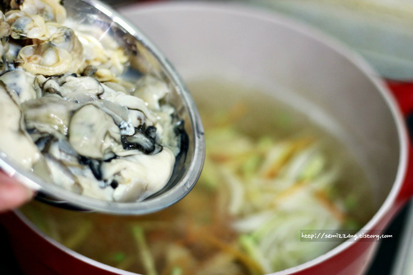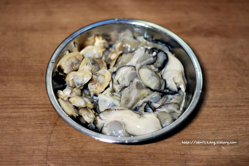 저는 굴 양이 좀 부족해서 바지락살을 추가 했는데요.