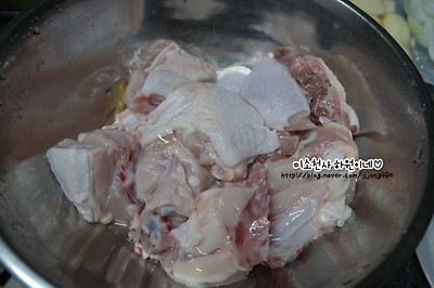 우선 닭은 깨끗히 씻어서 물기를 뺍니다.