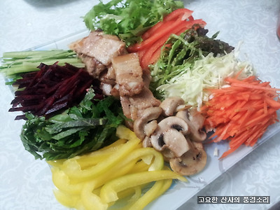 채소 : 상추 3장, 양배추 2장, 붉은 피망1/2개, 노랑 피망 1/2개,