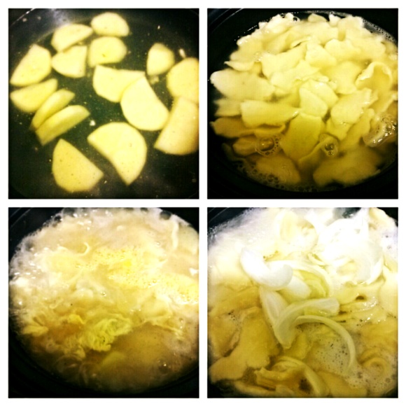 팔팔 끓으면 감자1개 반달로 썰어서 넣어주신후