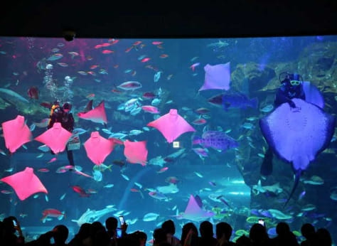 뿐만아니라 시간대별로 아쿠아리스트가 물고기에게 먹이는 주는 '딥 블루 오션 쇼', 수중에서 펼쳐지는 환상적인 싱크로 쇼, 바다코끼리와 참물범이 재롱을 펼치는 생태설명회 등의 프로그램이 진행되어 눈을 뗄수 없습니다.