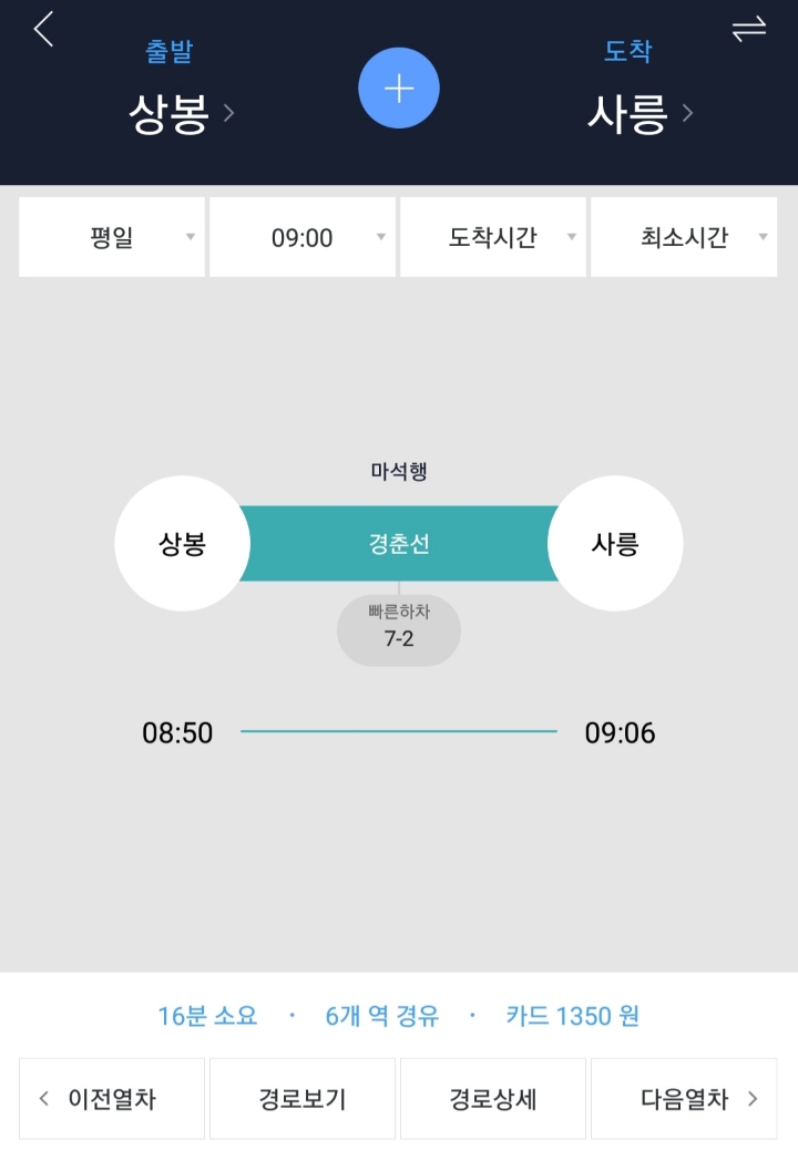 상봉에서 사릉역 시간표