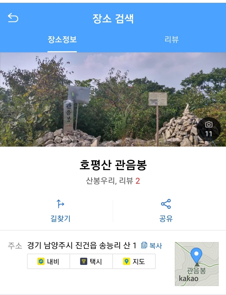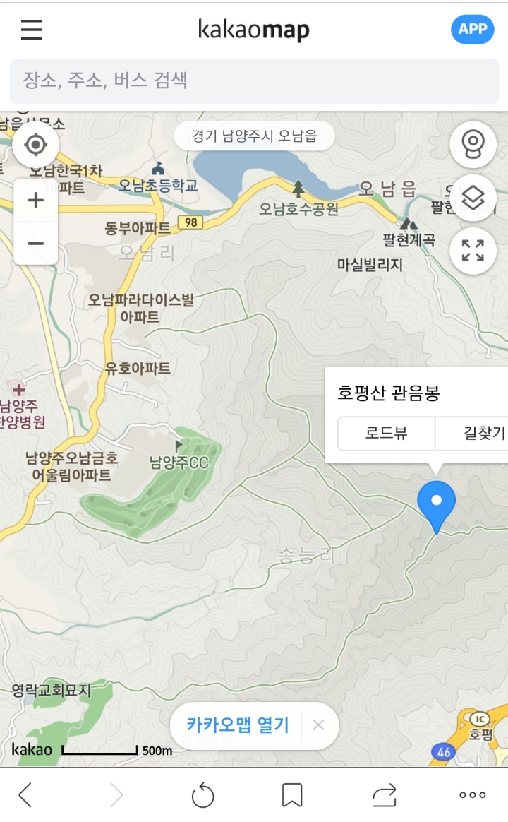 금호아파트-호평산 등산지도