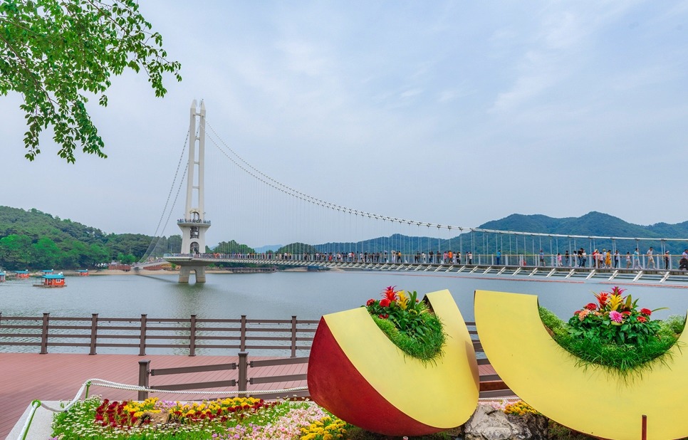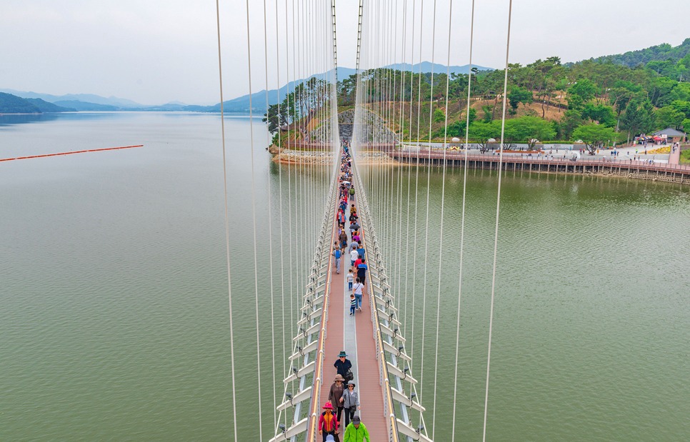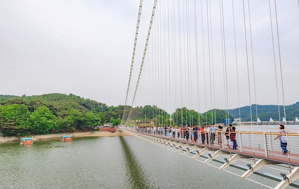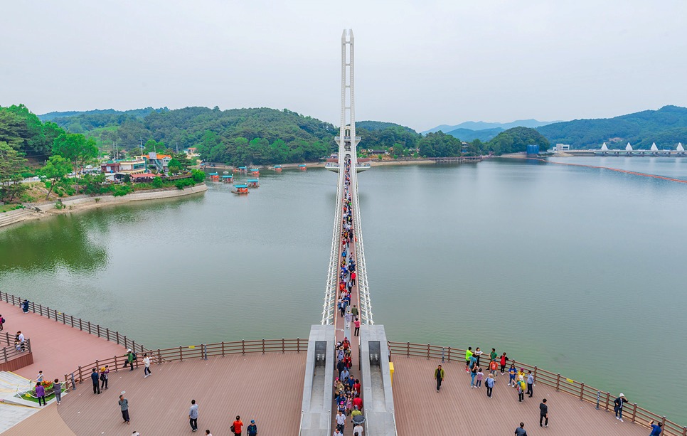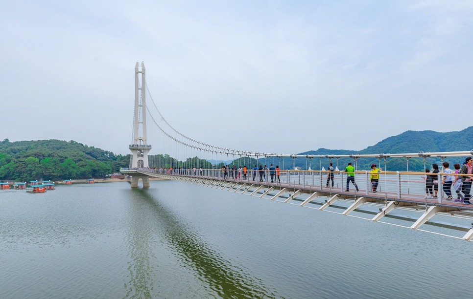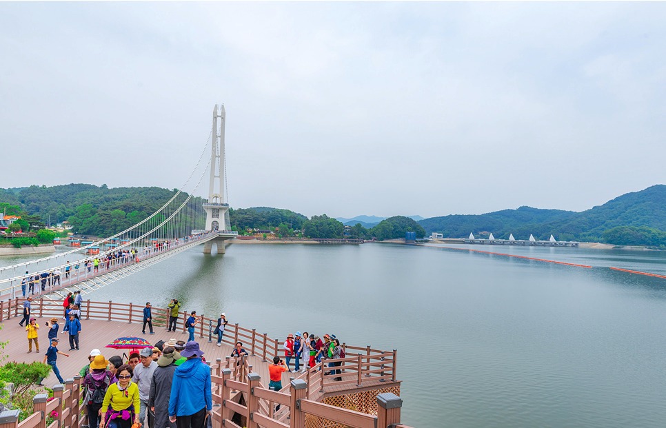 [[일요원정]](08/25) 예당호 출렁다리+조각공원+의형제공원+수덕사 일요 원정입니다~!! 작성자마음의천사|작성시간19.07.15|조회수11,083 목록 댓글 172 글자크기 작게가 글자크기 크게가 08월 25일 일요 원정산행은 충남 예산군에 위치한 국내 최장 길이인 출렁다리+조각공원+의형제 공원+수덕사 일요 트레킹 입니다. ............................................................................................................................................................. 충남 예산 예당호 출렁다리는~ 우리나라 최대 예당호 국민관광지와 조각공원과 인접하여 있으며, 이 출렁다리는 105억원을 들여 길이 402m에 폭 5m로 건설된 현수교로 초속 35㎧의 강풍과 진도 7의 강진(1등급)에도 견딜 수 있게 설계된 다리 입니다.성인(몸무게 70㎏기준) 3.150명이 동시에 건널 수 있으며국내 최장의 출렁다리로 느린호수길, 음악분수대 등과 관광명소로 예당 출렁다리를 지나 조각공원, 의형제 공원 트레킹후 시간이 된다면 천년의 아름다운 사찰 덕숭총림 수덕사 트레킹후 서울로 올라오는 코스입니다..............................................................................................................................................................예당호 조각공원은~예당호 조각공원은 넓은 바다를 연상케 하는 예당저수지가 한눈에 바라 보이는 예당관광지내 상단 500여평에 전국의 유명 중견작가와 공모작가가 참여하여 조성된 공원으로 작품성이나 가치성에서도 높은 점수를 받는 공원 입니다. 의형제 공원은~초등학교 국어책에 나오는 의로운 의형제 조각공원은 오래 전에 형제의 우애를 실천한 실존 인물로 이 고장에서 살았다고 합니다2019 의좋은 형제 여름축제가 열리는 곳 입니다. 수덕사에 가시면~덕숭총림 수덕사에 가시면 선수행(禪修行)의 향기를 느낄 수 있습니다.선수행의 향기는 곳곳에서 만발합니다. 덕숭산 꼭대기에 위치한 전월사는 만공스님이 말년을 보낸 곳입니다. 스님이 앉아서 수도 정진했던 벼랑바위가 있는데, 그 은산철벽같은 바위에 앉아 대오의 참맛을 향유해보는 것은 어떠실련지요? .............................................................................................................................................................. 예당호 출렁다리▶조각공원▶의형제공원▶시간이 된다면 수덕사를 들려다 오시는 코스입니다.트레킹 시간 3시간 30분 (6.1km)단, 머무는 시간에 따라 달라질수 있습니다. ..............................................................................................................................................................