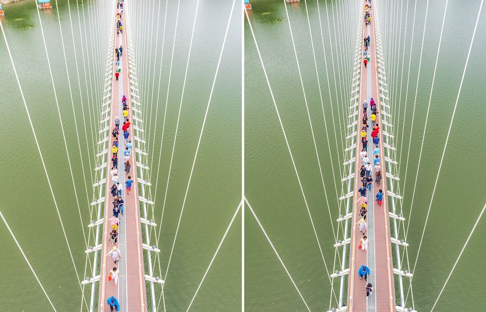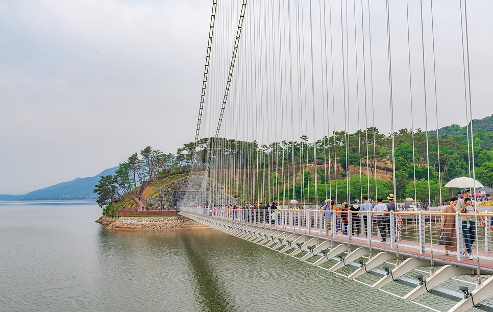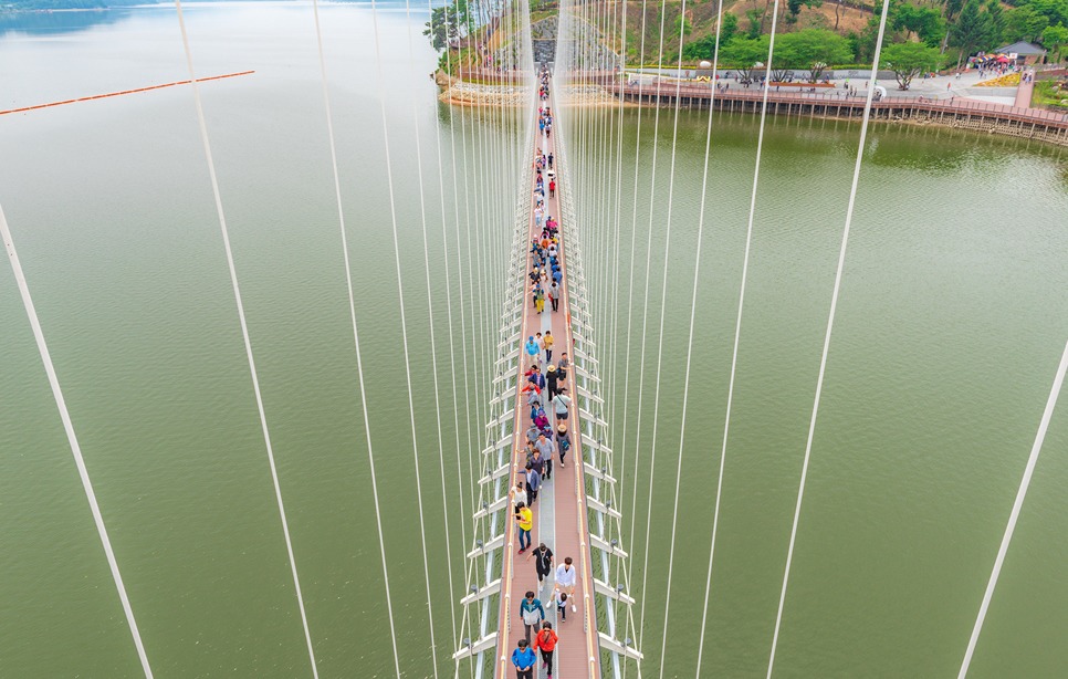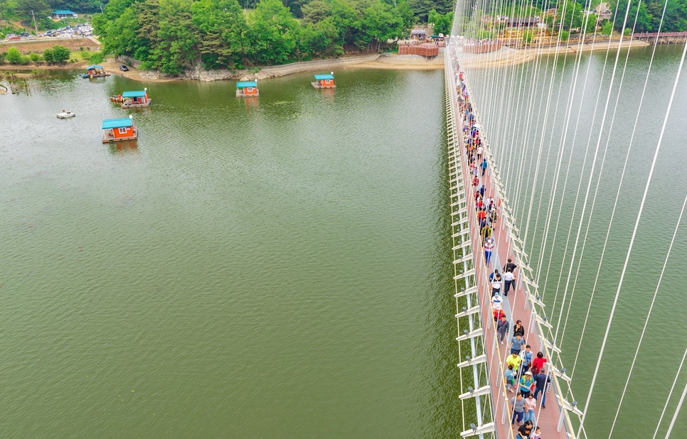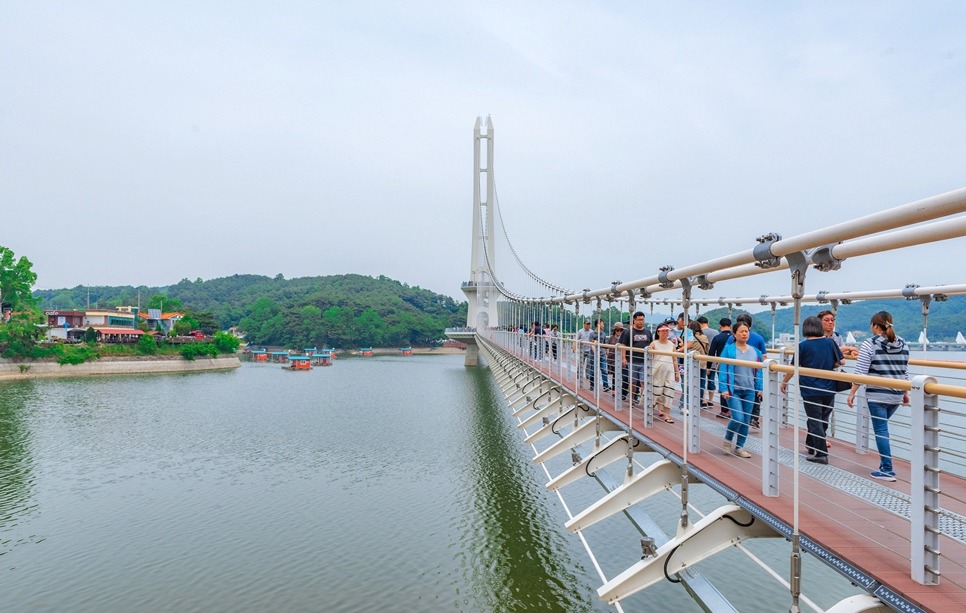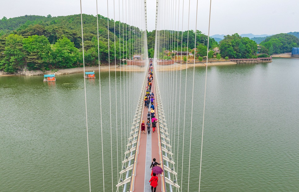 [[일요원정]](08/25) 예당호 출렁다리+조각공원+의형제공원+수덕사 일요 원정입니다~!! 작성자마음의천사|작성시간19.07.15|조회수11,083 목록 댓글 172 글자크기 작게가 글자크기 크게가 08월 25일 일요 원정산행은 충남 예산군에 위치한 국내 최장 길이인 출렁다리+조각공원+의형제 공원+수덕사 일요 트레킹 입니다. ............................................................................................................................................................. 충남 예산 예당호 출렁다리는~ 우리나라 최대 예당호 국민관광지와 조각공원과 인접하여 있으며, 이 출렁다리는 105억원을 들여 길이 402m에 폭 5m로 건설된 현수교로 초속 35㎧의 강풍과 진도 7의 강진(1등급)에도 견딜 수 있게 설계된 다리 입니다.성인(몸무게 70㎏기준) 3.150명이 동시에 건널 수 있으며국내 최장의 출렁다리로 느린호수길, 음악분수대 등과 관광명소로 예당 출렁다리를 지나 조각공원, 의형제 공원 트레킹후 시간이 된다면 천년의 아름다운 사찰 덕숭총림 수덕사 트레킹후 서울로 올라오는 코스입니다..............................................................................................................................................................예당호 조각공원은~예당호 조각공원은 넓은 바다를 연상케 하는 예당저수지가 한눈에 바라 보이는 예당관광지내 상단 500여평에 전국의 유명 중견작가와 공모작가가 참여하여 조성된 공원으로 작품성이나 가치성에서도 높은 점수를 받는 공원 입니다. 의형제 공원은~초등학교 국어책에 나오는 의로운 의형제 조각공원은 오래 전에 형제의 우애를 실천한 실존 인물로 이 고장에서 살았다고 합니다2019 의좋은 형제 여름축제가 열리는 곳 입니다. 수덕사에 가시면~덕숭총림 수덕사에 가시면 선수행(禪修行)의 향기를 느낄 수 있습니다.선수행의 향기는 곳곳에서 만발합니다. 덕숭산 꼭대기에 위치한 전월사는 만공스님이 말년을 보낸 곳입니다. 스님이 앉아서 수도 정진했던 벼랑바위가 있는데, 그 은산철벽같은 바위에 앉아 대오의 참맛을 향유해보는 것은 어떠실련지요? .............................................................................................................................................................. 예당호 출렁다리▶조각공원▶의형제공원▶시간이 된다면 수덕사를 들려다 오시는 코스입니다.트레킹 시간 3시간 30분 (6.1km)단, 머무는 시간에 따라 달라질수 있습니다. ..............................................................................................................................................................