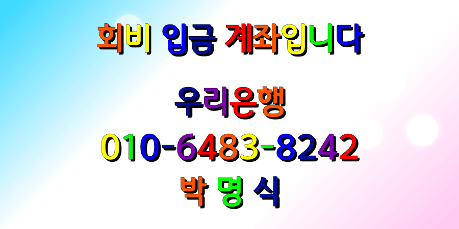 | 우리은행 | 010-6483-8242 | 박 명 식 | 010-9144-3390 |