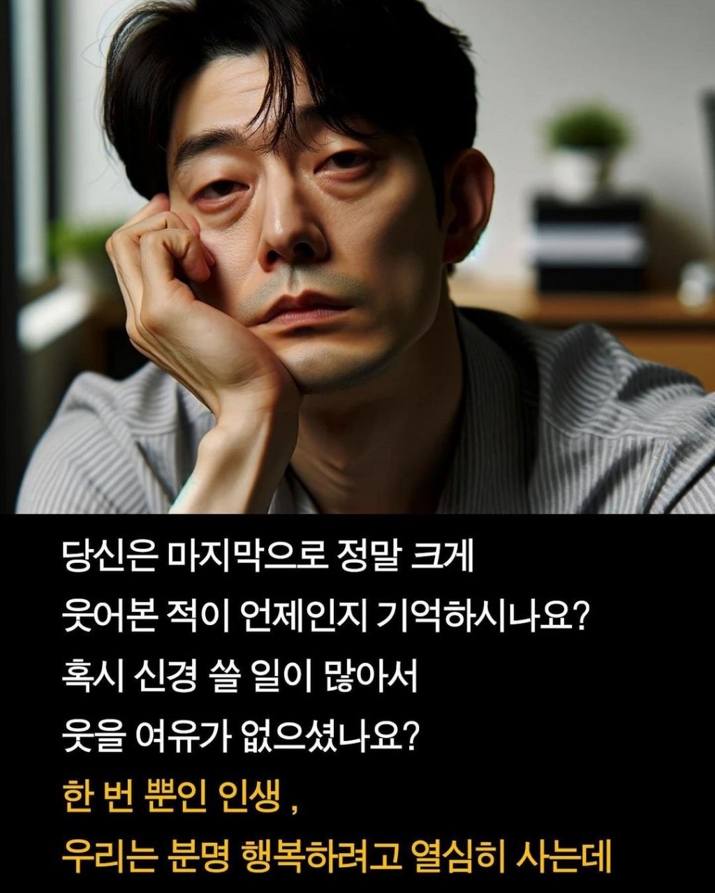 사람은 평생동안 얼마나 웃을까 충격 작성자클로이2|작성시간24.04.04|조회수240 목록 댓글 14 글자크기 작게가 글자크기 크게가 다음검색 현재 게시글 추가 기능 열기 북마크 공유하기 신고 센터로 신고 댓글 댓글 14 댓글쓰기 답글쓰기 댓글 리스트 작성자사랑천사 | 작성시간 24.04.04 답댓글 작성자클로이2 작성자 본인 여부 작성자 | 작성시간 24.04.06 사랑천사님 감사드립니다 멋진주말 보내세요 작성자멋진친구 | 작성시간 24.04.06 좋은 글 감사합니다. 답댓글 작성자클로이2 작성자 본인 여부 작성자 | 작성시간 24.04.06 멋진친구님 감사드립니다 주말 멋지게 보내시고요 작성자갑봉 | 작성시간 24.04.06 박장대소는 아니더라도 다정한 미소는 최소한 장착해야 겠습니다. 댓글 전체보기
