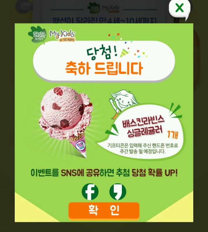 그린핑거는 남편꺼 오늘 베스킨 떴어요