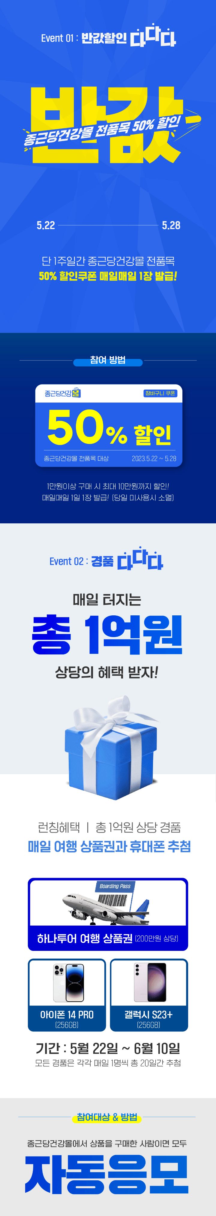 + 전품목 50% 할인 쿠폰(매일1회) +출첵+복권