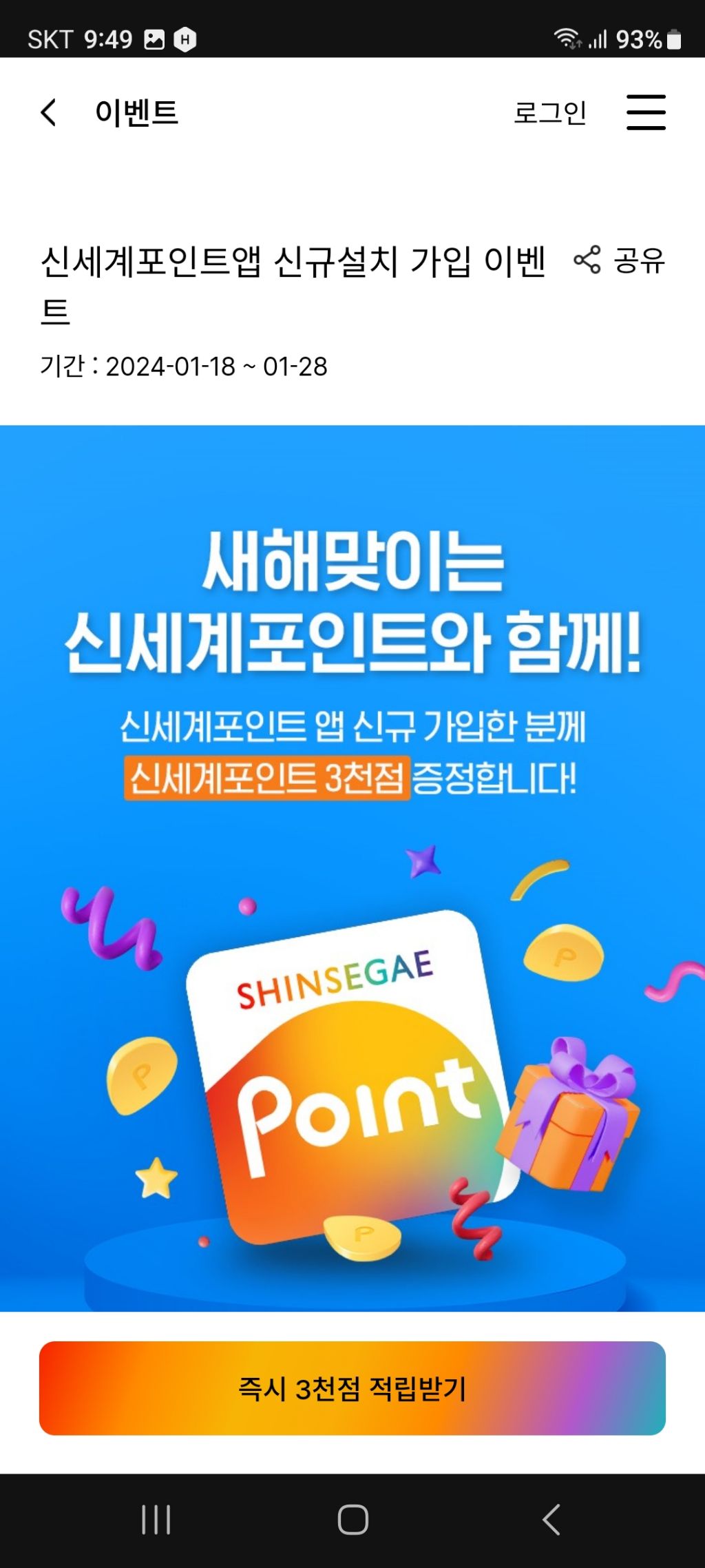 신세계포인트앱 신규설치 가입 이벤트(~1.28) 작성자나도쫌|작성시간24.01.21|조회수361 목록 댓글 0 글자크기 작게가 글자크기 크게가 신세계포인트여기를 눌러 링크를 확인하세요m.shinsegaepoint.com 다음검색 현재 게시글 추가 기능 열기 북마크 공유하기 신고 센터로 신고 댓글 댓글 0 댓글쓰기 답글쓰기 댓글 리스트