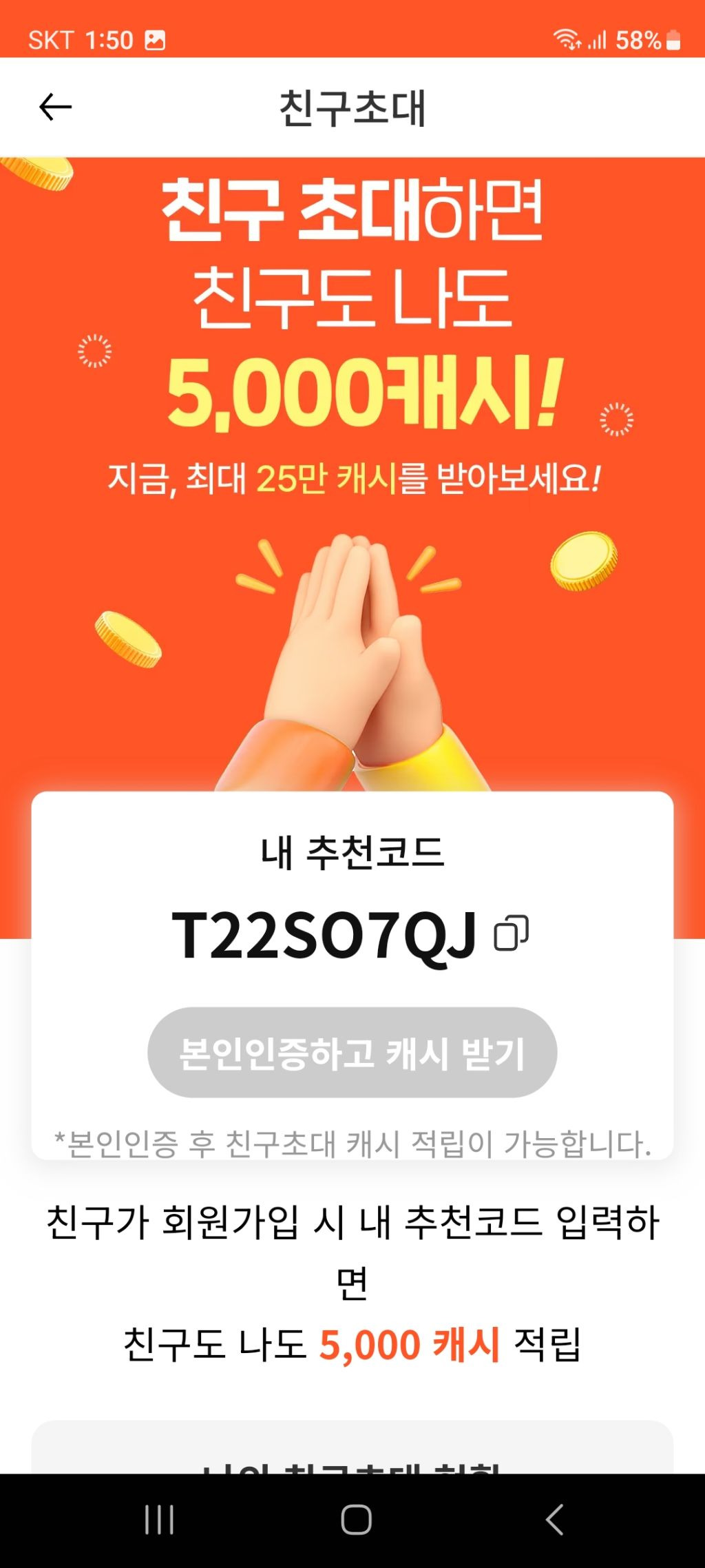 언니의 파우치 신규 친구초대 서로 5000 포인트-상시 진행중 작성자나도쫌|작성시간24.10.13|조회수615 목록 댓글 49 글자크기 작게가 글자크기 크게가 https://unpa.me/invite/store친구 초대 - 언니의파우치여기를 눌러 링크를 확인하세요unpa.me초대코드 T22SO7QJ 가입시 입력 부탁드려요. 5천 포인트로 편상3천이나 빽다방 라떼 외 구매가능(언니딜로 양말. 생수. 감자. 고구마 양파 등) 다음검색 현재 게시글 추가 기능 열기 북마크 공유하기 신고 센터로 신고 댓글 댓글 49 댓글쓰기 답글쓰기 댓글 리스트 답댓글 작성자하이a | 작성시간 24.10.17 확인부탁드려요ㅜㅜ지금 다시 한번 확인했는데도 저 추천안되었습니다ㅜ 작성자웅웅e | 작성시간 24.10.17 추천완료7JSSN3OM 부탁드려요^^ 답댓글 작성자재밌게해요 | 작성시간 24.11.01 누구 추천 하셨나요? 작성자감동감동 | 작성시간 24.10.22 추천완료!Y7WHUE5Q추천부탁드려요 작성자안녕하새우 | 작성시간 24.10.27 2CX36RAY추천 부탁드려요 댓글 전체보기