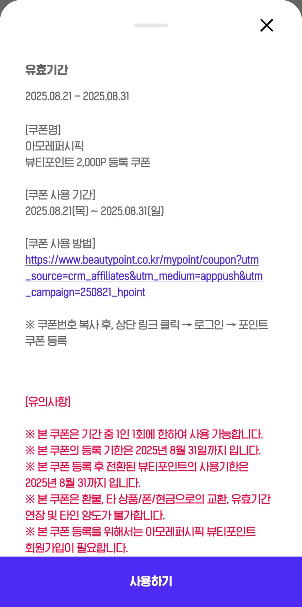 H.point 뷰티포인트 2천 오늘출석 작성자나도쫌|작성시간25.08.21|조회수199 목록 댓글 0 글자크기 작게가 글자크기 크게가 H.point 앱에서 참여하세요 다음검색 현재 게시글 추가 기능 열기 북마크 공유하기 신고 센터로 신고 댓글 댓글 0 댓글쓰기 답글쓰기 댓글 리스트