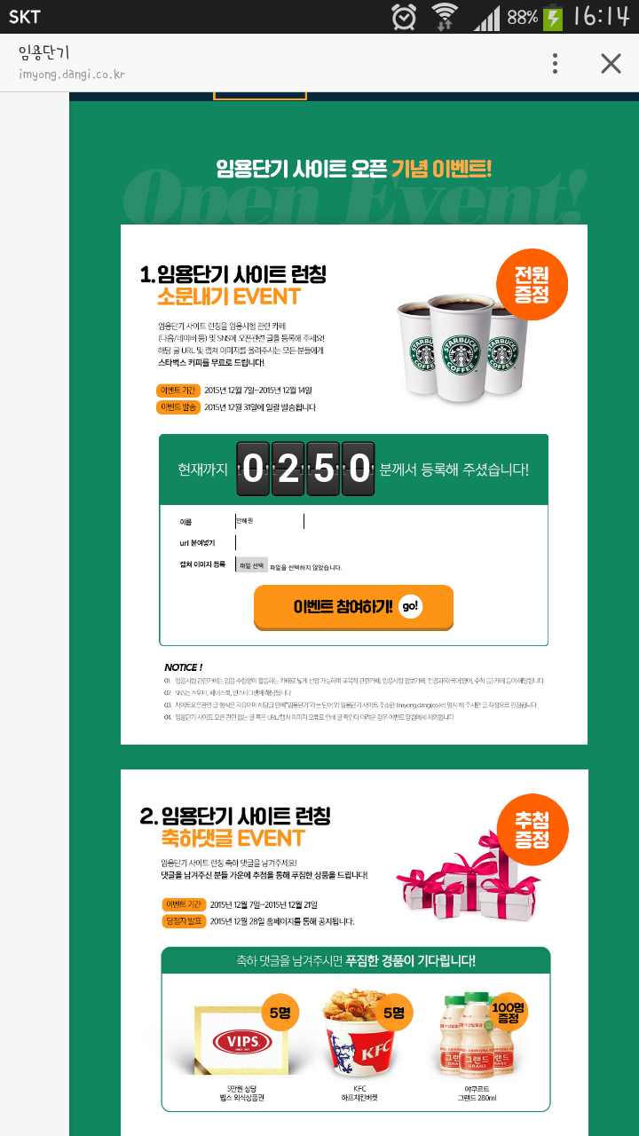 임용단기런칭 스벅 100프로요 작성자예쁜아가야|작성시간15.12.10|조회수3,548 목록 댓글 43 글자크기 작게가 글자크기 크게가 http://imyong.dangi.co.kr/landing/site/open_event주의사항 잘보세요!!!!!! 다음검색 현재 게시글 추가 기능 열기 북마크 공유하기 신고 센터로 신고 댓글 댓글 43 댓글쓰기 답글쓰기 댓글 리스트 작성자행운과함께 | 작성시간 15.12.11 감사해용~ 작성자etoile7 | 작성시간 15.12.11 감사합니다:) 작성자경품초보응모 | 작성시간 15.12.11 감사합니다~! 작성자김관우아빠 | 작성시간 15.12.11 감사합니다 3000이 넘었네요 작성자뿅루지 | 작성시간 15.12.12 감사합니다 댓글 전체보기