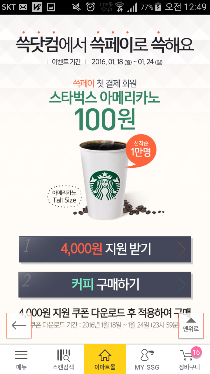 전 이마트몰 이벤트에 들어가서 결제했네요