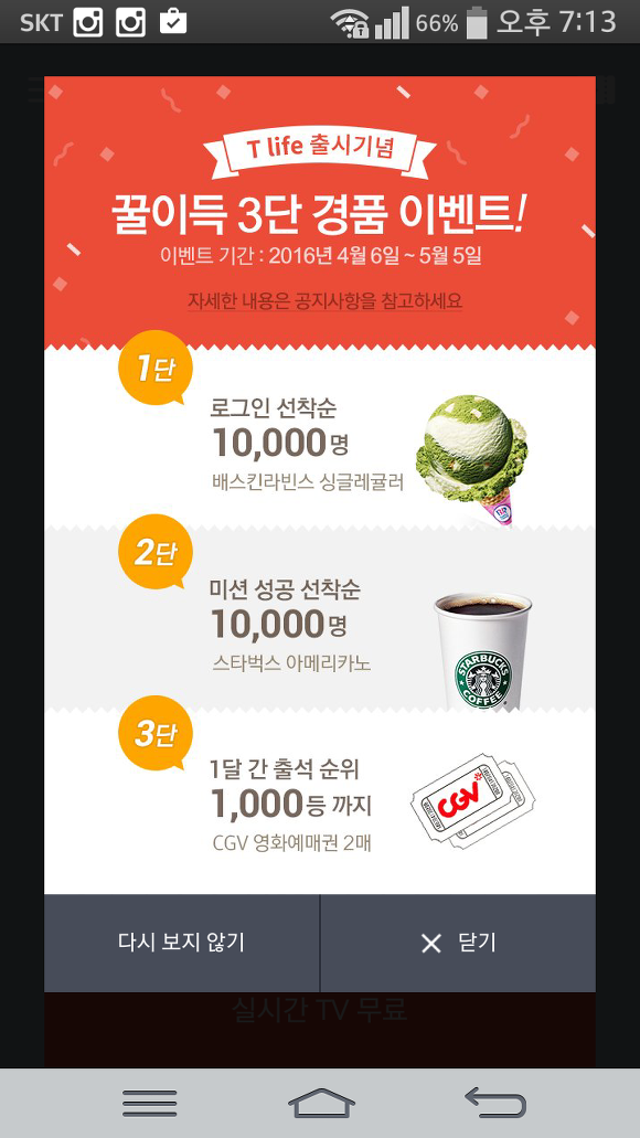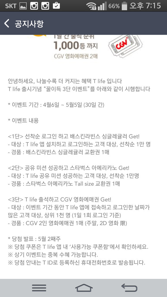 이벤트주소 : https://play.google.com/store/apps/details?id=com.skt.tlife