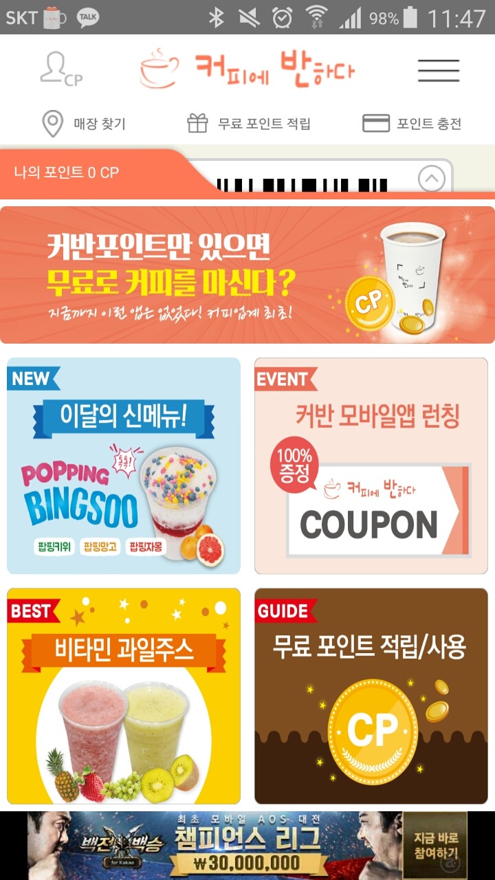 [100%당첨]커피에 반하다 앱 설치시 아메커피 1 잔 무료 작성자필리아^^|작성시간16.06.04|조회수1,444 목록 댓글 12 글자크기 작게가 글자크기 크게가 커피에 반하다 매장 가까우면설치하고 받으세요~ 다음검색 현재 게시글 추가 기능 열기 북마크 공유하기 신고 센터로 신고 댓글 댓글 12 댓글쓰기 답글쓰기 댓글 리스트 답댓글 작성자필리아^^ 작성자 본인 여부 작성자 | 작성시간 16.06.05 넵~즐거운 연휴 되세요♡ 작성자지구외계인 | 작성시간 16.06.05 정보 감사합니다 ^^ 답댓글 작성자필리아^^ 작성자 본인 여부 작성자 | 작성시간 16.06.05 넵~즐거운 연휴 되세여♡ 작성자코르 | 작성시간 16.06.05 감사합니다~~ 작성자eaaa | 작성시간 16.06.05 정보 감사합니다~!! 댓글 전체보기
