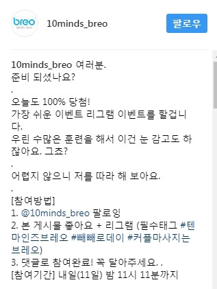 이벤트주소 : https://www.instagram.com/p/BbT01IYBUfB/?taken-by=10minds_breo