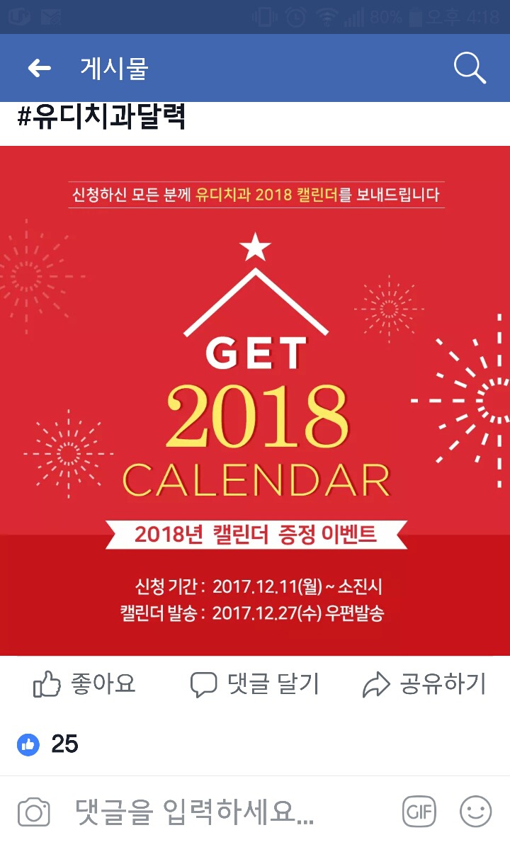 [ #유디치과이벤트 ] #2018년 #달력 을 드립니다!!