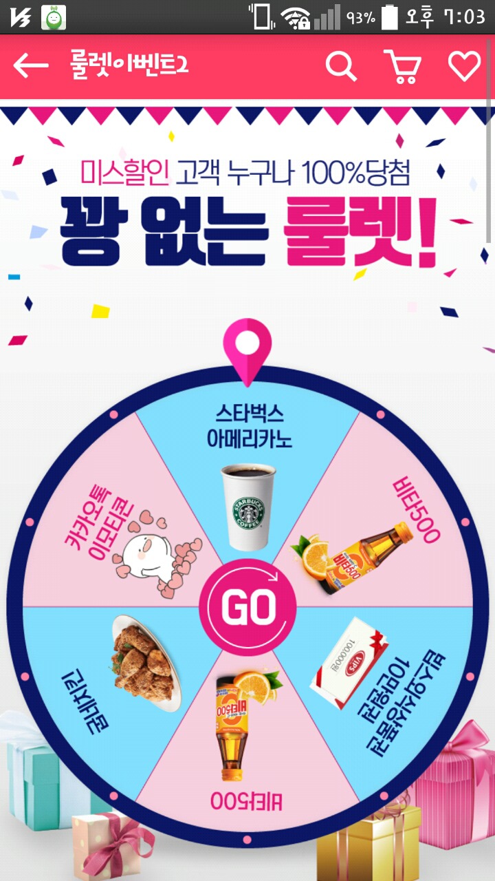 미스할인앱 꽝없는룰렛2(~3.31.) 작성자나도쫌|작성시간18.03.15|조회수2,952 목록 댓글 34 글자크기 작게가 글자크기 크게가 미스할인앱에서 응모하세요http://m.mysdis.co.kr/event/detail/?e_num=18 다음검색 현재 게시글 추가 기능 열기 북마크 공유하기 신고 센터로 신고 댓글 댓글 34 댓글쓰기 답글쓰기 댓글 리스트 작성자lani | 작성시간 18.03.17 저는 앱을 깐 적도 없고 처음 깔고 들어갔는데 메가쇼 코드 넣으라 나오네요.댓글에 올려주신 606513도 안돼고요.ㅠㅠ 작성자두둠칫당첨 | 작성시간 18.03.18 정보 감사드려요 작성자마츠모토쥬닝 | 작성시간 18.03.19 종료된 이벤트래요; 이미지 확대 작성자내옹이 | 작성시간 18.03.27 오! 저 비타오백 됐어요. 당첨..지금도 당첨되는데요?? 링크타고 들어가면 되요!! 작성자필리아^^ | 작성시간 18.03.30 감사합니다^^ 댓글 전체보기
