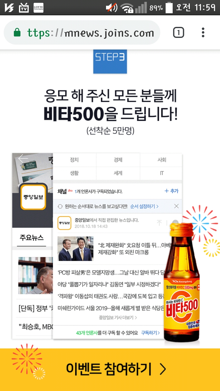 중앙일보 .네이버 채널구독이벤트 (선착5만개.비타500) 작성자나도쫌|작성시간18.10.25|조회수1,244 목록 댓글 10 글자크기 작게가 글자크기 크게가 https://mnews.joins.com/Event/NaverChannel/?fbclid=IwAR0MRRz3RwHvPqNbGPAIp69U0mpiHxwBGO3YhMnKGQDirkLFJptRyWIQwZY 다음검색 현재 게시글 추가 기능 열기 북마크 공유하기 신고 센터로 신고 댓글 댓글 10 댓글쓰기 답글쓰기 댓글 리스트 작성자jwlover | 작성시간 18.10.26 감사요 작성자완전죠아 | 작성시간 18.10.26 고맙습니다 작성자부자가되자 | 작성시간 18.10.27 감사합니다 작성자아름다운날들아 | 작성시간 18.11.02 감사해요♥ 작성자cherrytomato | 작성시간 18.11.15 받았습니다 감사합니다 댓글 전체보기