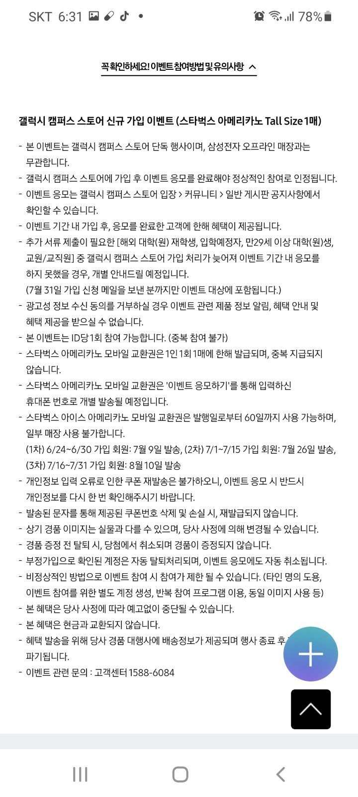 갤럭시 캠퍼스 스토어 신규가입 이벤트 작성자별이1852|작성시간21.06.28|조회수812 목록 댓글 0 글자크기 작게가 글자크기 크게가 https://www.samsung.com/sec/event/galaxycampusstore/갤럭시 캠퍼스 스토어 신규가입 이벤트ㅣSamsung 대한민국"대학생/대학원생/교직원을 위한 공식 교육 할인 스토어 지금 가입하고 스타벅스 아메리카노 받아가세요 !"www.samsung.com나이제한 있다고 저는 안되는데요 ㅜㅜ대학교계정이 있으신 대학생이나 대학원생분들만 참여가능합니다 다음검색 현재 게시글 추가 기능 열기 북마크 공유하기 신고 센터로 신고 댓글 댓글 0 댓글쓰기 답글쓰기 댓글 리스트