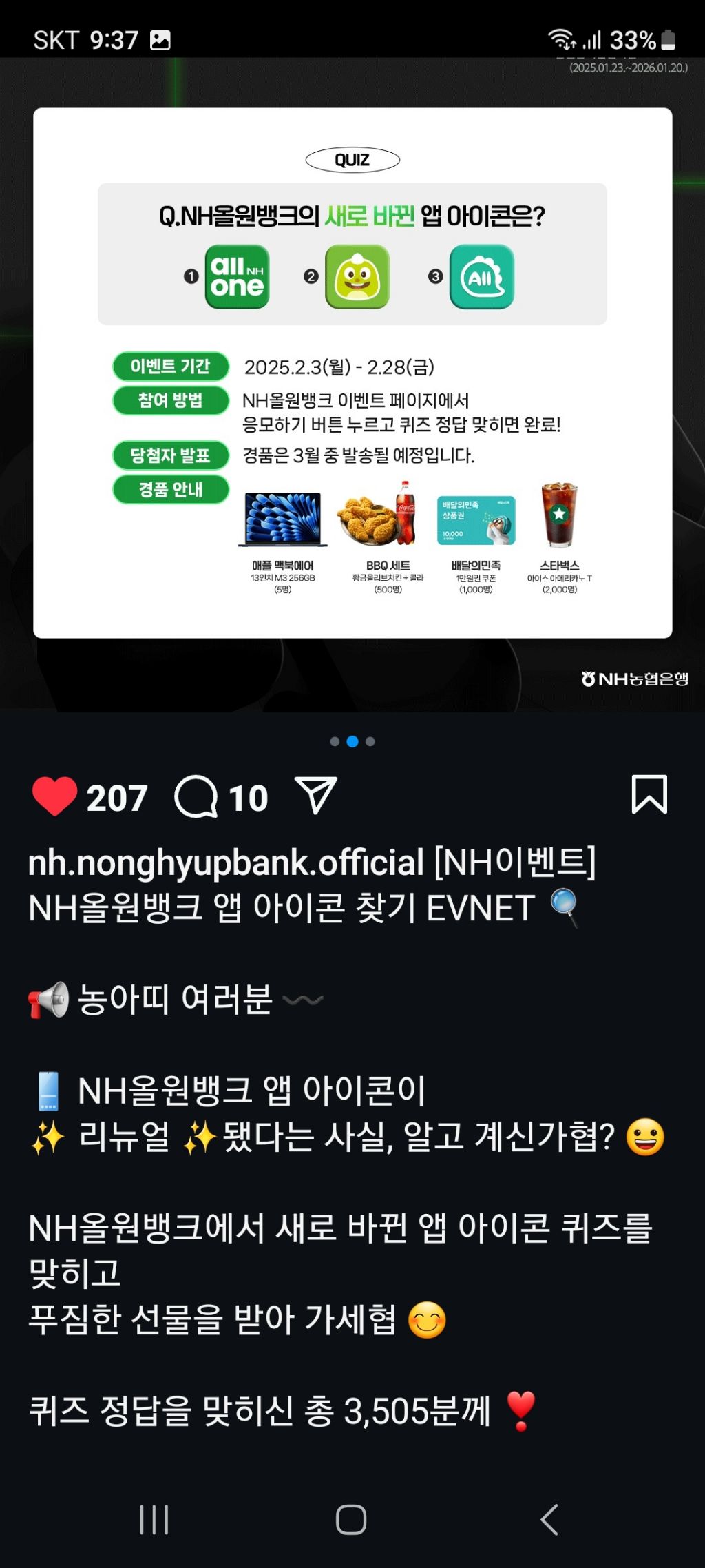 NH올원뱅크앱 아이콘 찾기 이벤트 (~2.28) 작성자나도쫌|작성시간25.02.03|조회수337 목록 댓글 0 글자크기 작게가 글자크기 크게가 NH농협은행 올원뱅크 nhallonebank.nonghyup.com 다음검색 현재 게시글 추가 기능 열기 북마크 공유하기 신고 센터로 신고 댓글 댓글 0 댓글쓰기 답글쓰기 댓글 리스트