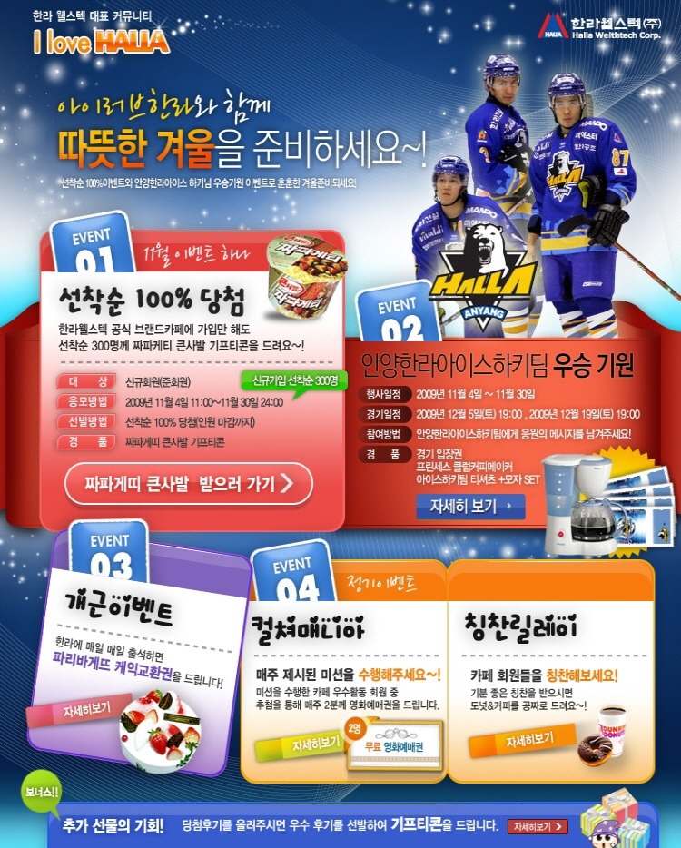 신규가입 선착순 300명 기프티콘 등 작성자크게한방|작성시간09.11.04|조회수758 목록 댓글 1 글자크기 작게가 글자크기 크게가 http://cafe.daum.net/eventhisense 다음검색 현재 게시글 추가 기능 열기 북마크 공유하기 신고 센터로 신고 댓글 댓글 1 댓글쓰기 답글쓰기 댓글 리스트 작성자바다구름 | 작성시간 09.11.04 케익교환권 개근회원 들 중 추첨으로 뽑는 건가요? 그리고 매일 글을 작성하라는데 어느 게시판에 글 작성해야 하는지도 알려 주세요 댓글 전체보기