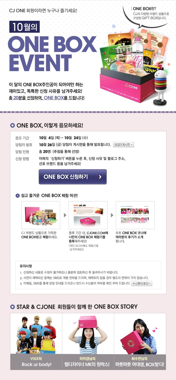 - 이벤트페이지 주소(URL) : http://www.cjone.com/cjmportal/hpvf01Q1View.do?evt_seq=271