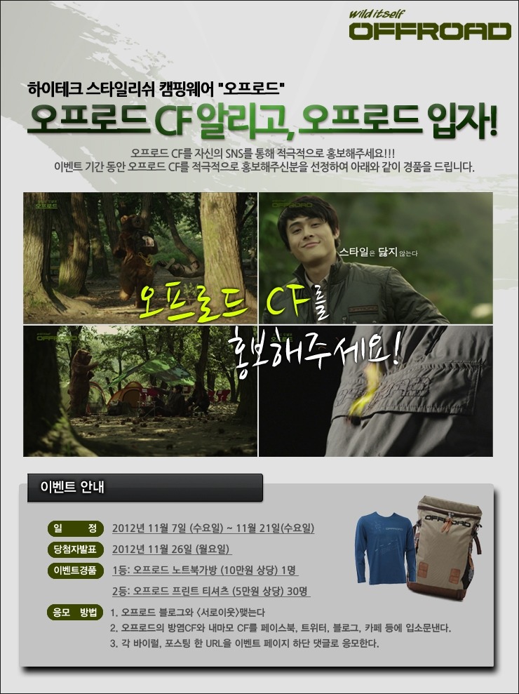 아웃도어 오프로드의 cf 홍보하기 이벤트!!!