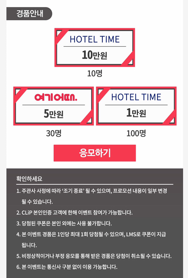 클립(clip) 발렌타인데이 여기어때? (2.5-2.12 17시까지) 작성자모찌롱|작성시간16.02.05|조회수714 목록 댓글 2 글자크기 작게가 글자크기 크게가 클립에서 여기어때랑 호텔타임 할인쿠폰 주는거 시작했어요. 12일 5시까지 하는건데 매일매일 중복참여 가능해요. 당첨여부는 바로 확인 가능하네요. 다음검색 현재 게시글 추가 기능 열기 북마크 공유하기 신고 센터로 신고 댓글 댓글 2 댓글쓰기 답글쓰기 댓글 리스트 작성자바보처럼 너를 | 작성시간 16.02.05 감사합니다~ 답댓글 작성자모찌롱 작성자 본인 여부 작성자 | 작성시간 16.02.06 ^^ 연휴 잘 보내세용! 댓글 전체보기