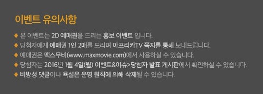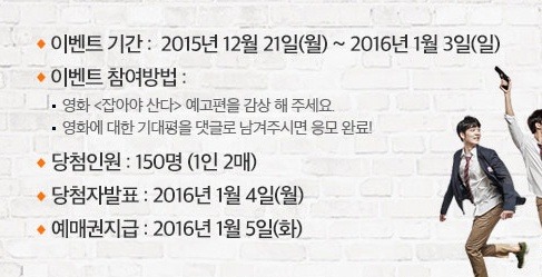 아프리카TV <잡아야 산다> 영화예매권 150명(~1/3, 1/4발표)