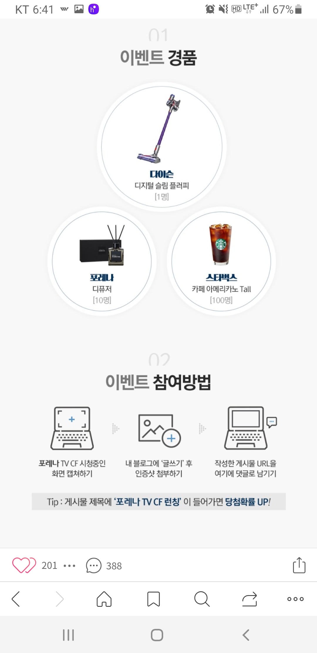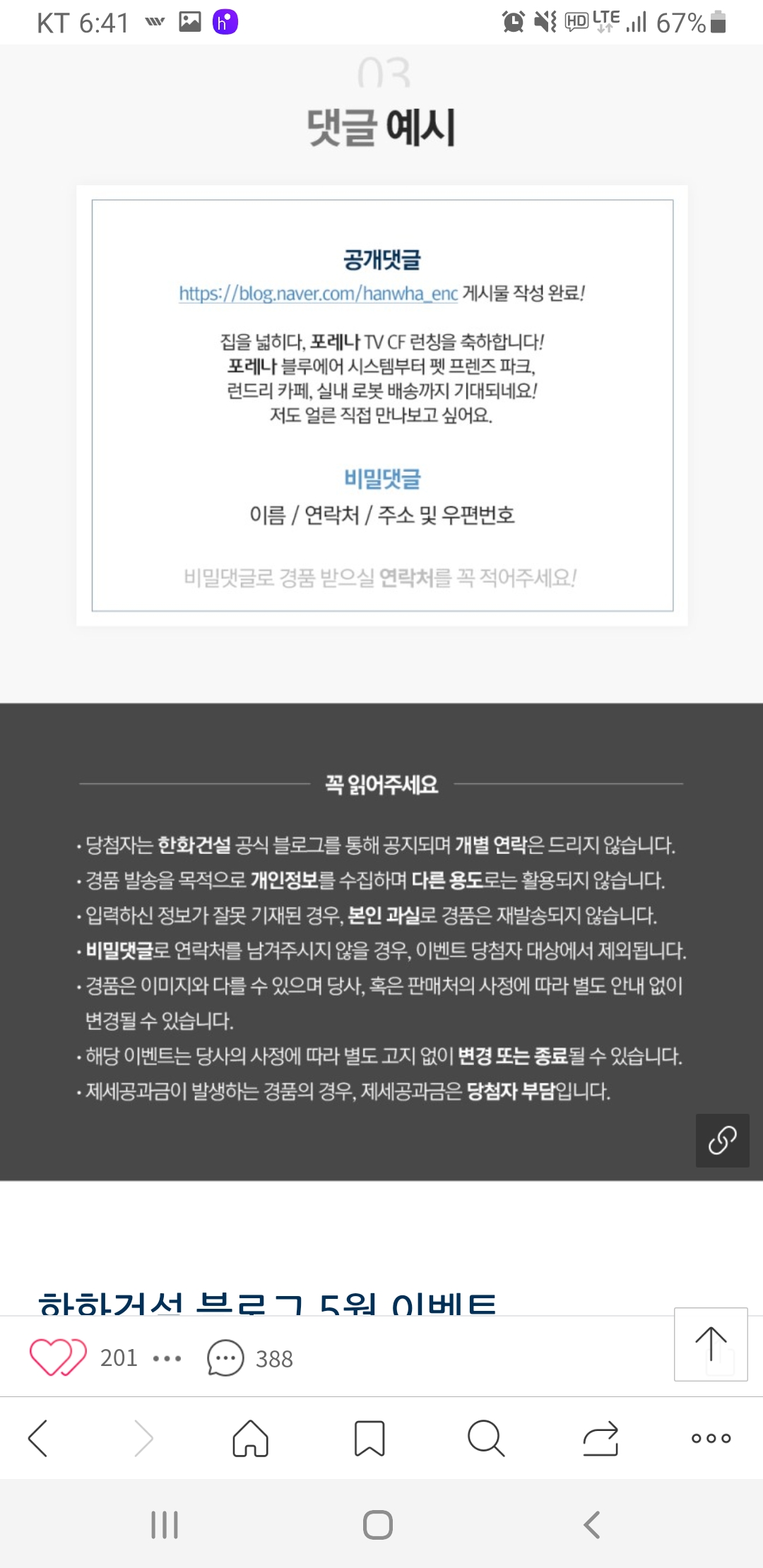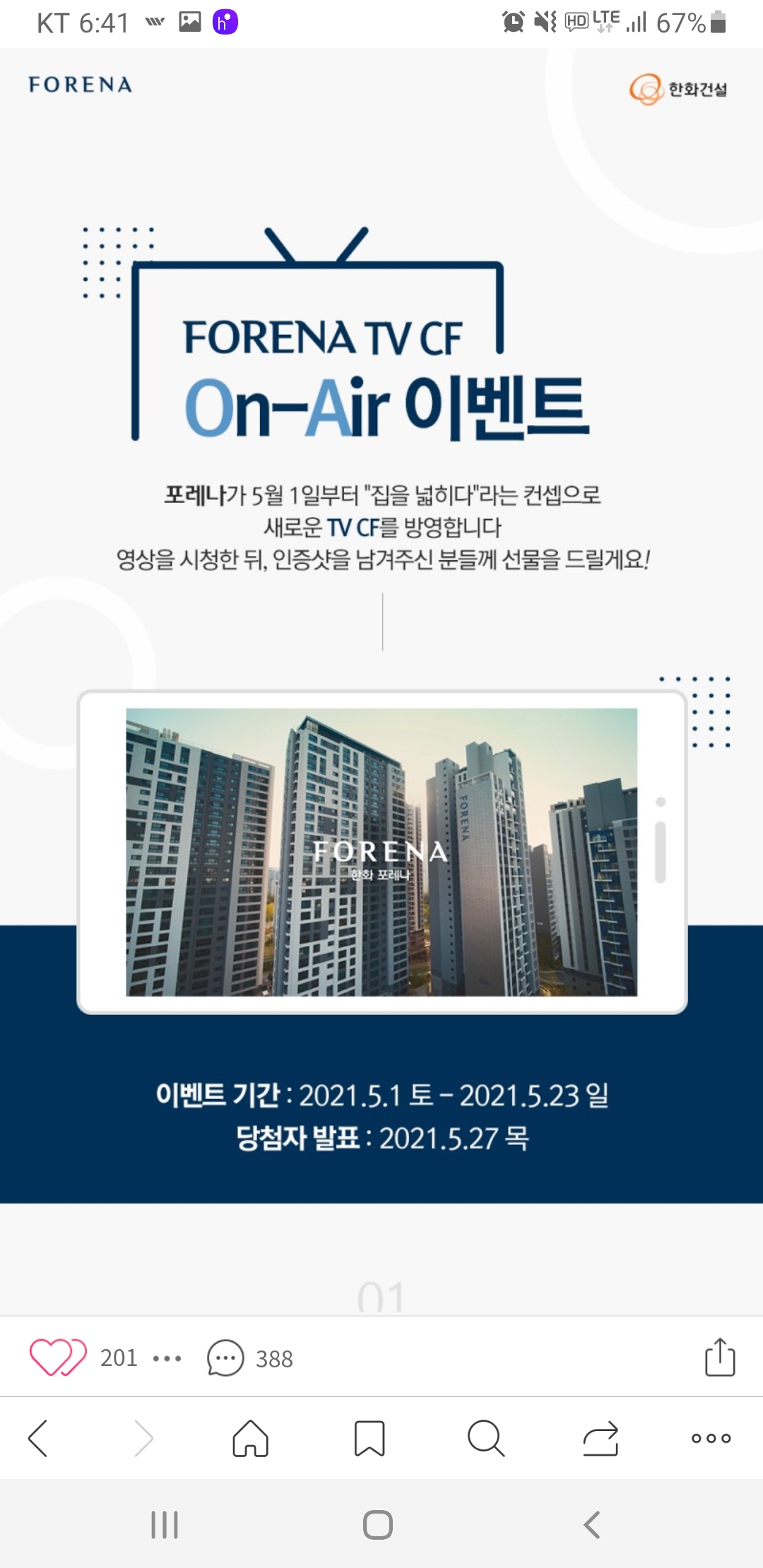 한화 포레나TV CF on- air 이벤트(~5.23) 작성자난이언니|작성시간21.05.09|조회수479 목록 댓글 2 글자크기 작게가 글자크기 크게가 https://m.blog.naver.com/PostView.nhn?blogId=hanwha_enc&logNo=222329158028&proxyReferer=&proxyReferer=https:%2F%2Fblog.naver.com%2Fhanwha_enc%2F222329158028 다음검색 현재 게시글 추가 기능 열기 북마크 공유하기 신고 센터로 신고 댓글 댓글 2 댓글쓰기 답글쓰기 댓글 리스트 작성자네오베르베르 | 작성시간 21.05.10 감사합니다 작성자팥빙수좋아라 | 작성시간 21.05.10 감사합니다 댓글 전체보기