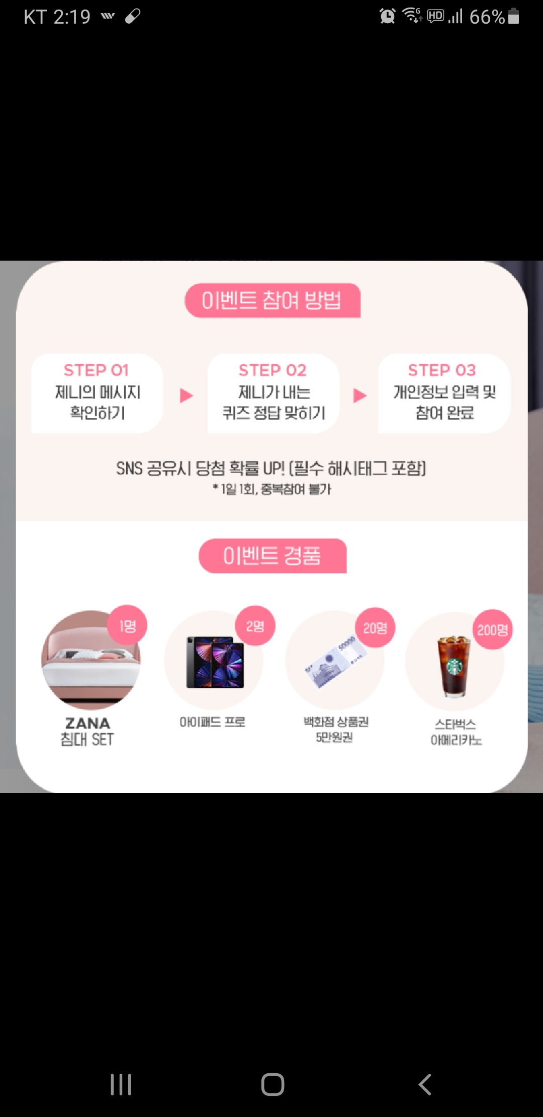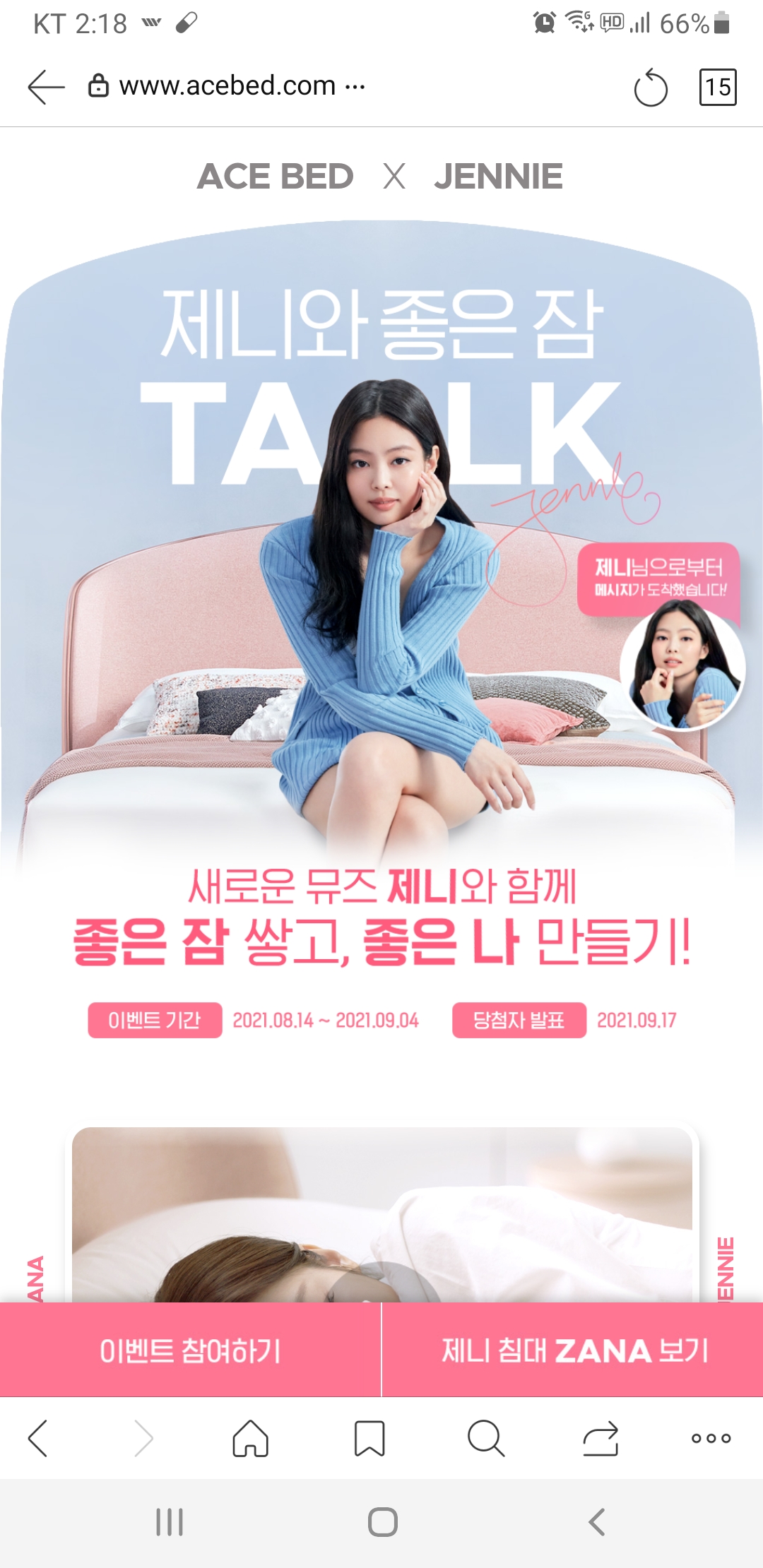 에이스침대 제니와 좋은잠 (~9.4) 작성자난이언니|작성시간21.08.15|조회수714 목록 댓글 8 글자크기 작게가 글자크기 크게가 https://www.acebed.com/zana/event/index.jsp?bannerUrl=mZANAigsns2108&bannerSeq=1 다음검색 현재 게시글 추가 기능 열기 북마크 공유하기 신고 센터로 신고 댓글 댓글 8 댓글쓰기 답글쓰기 댓글 리스트 작성자네오베르베르 | 작성시간 21.08.15 감사합니다 작성자하느님사랑 | 작성시간 21.08.15 감사합니다^^ 작성자팥빙수좋아라 | 작성시간 21.08.18 감사합니다 작성자불멸의이순신 | 작성시간 21.08.18 감사합니다😀 작성자스무디퀸 | 작성시간 21.08.21 ㅇㅁ ㄳ 댓글 전체보기